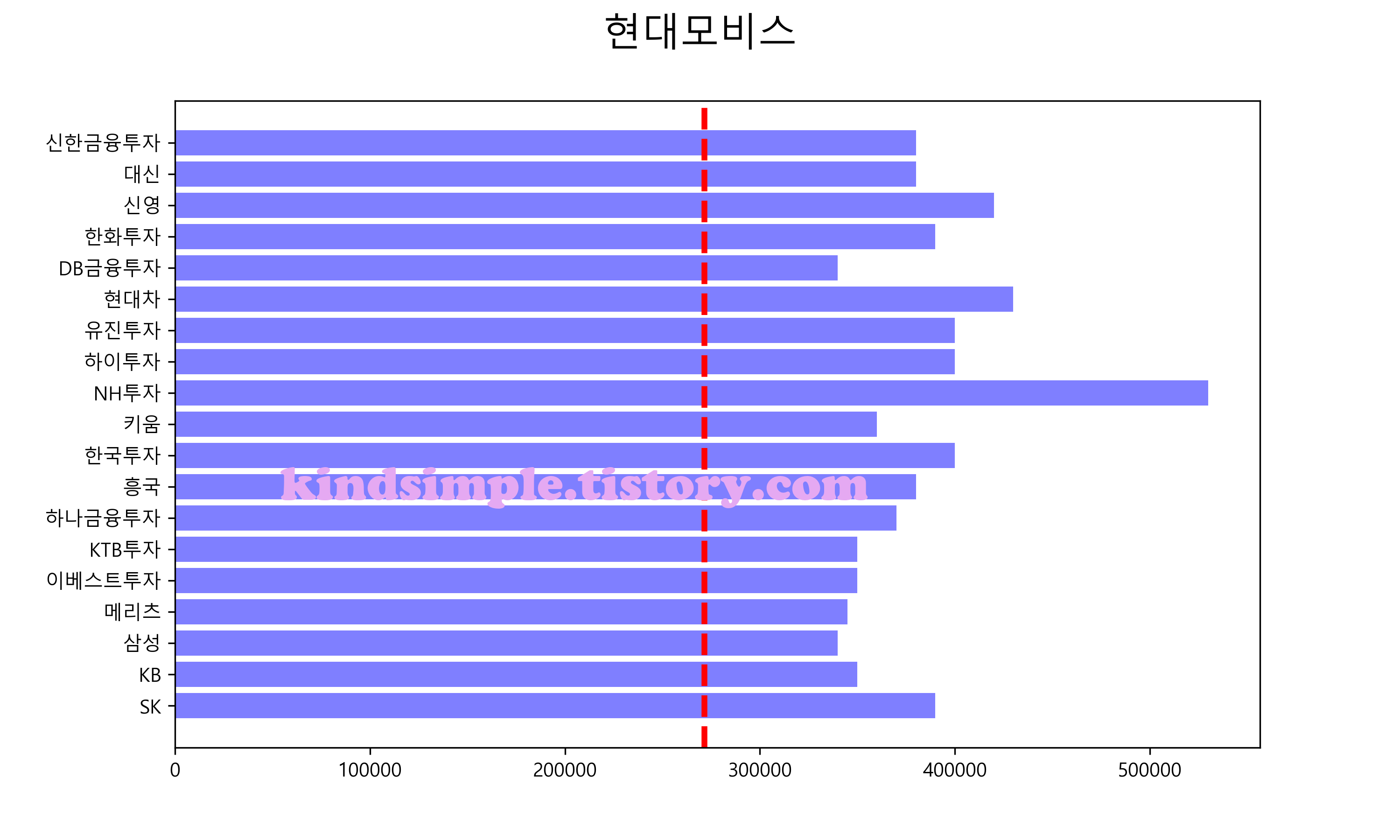 아래 그래프의 빨간색 점선이 현재 주가입니다.