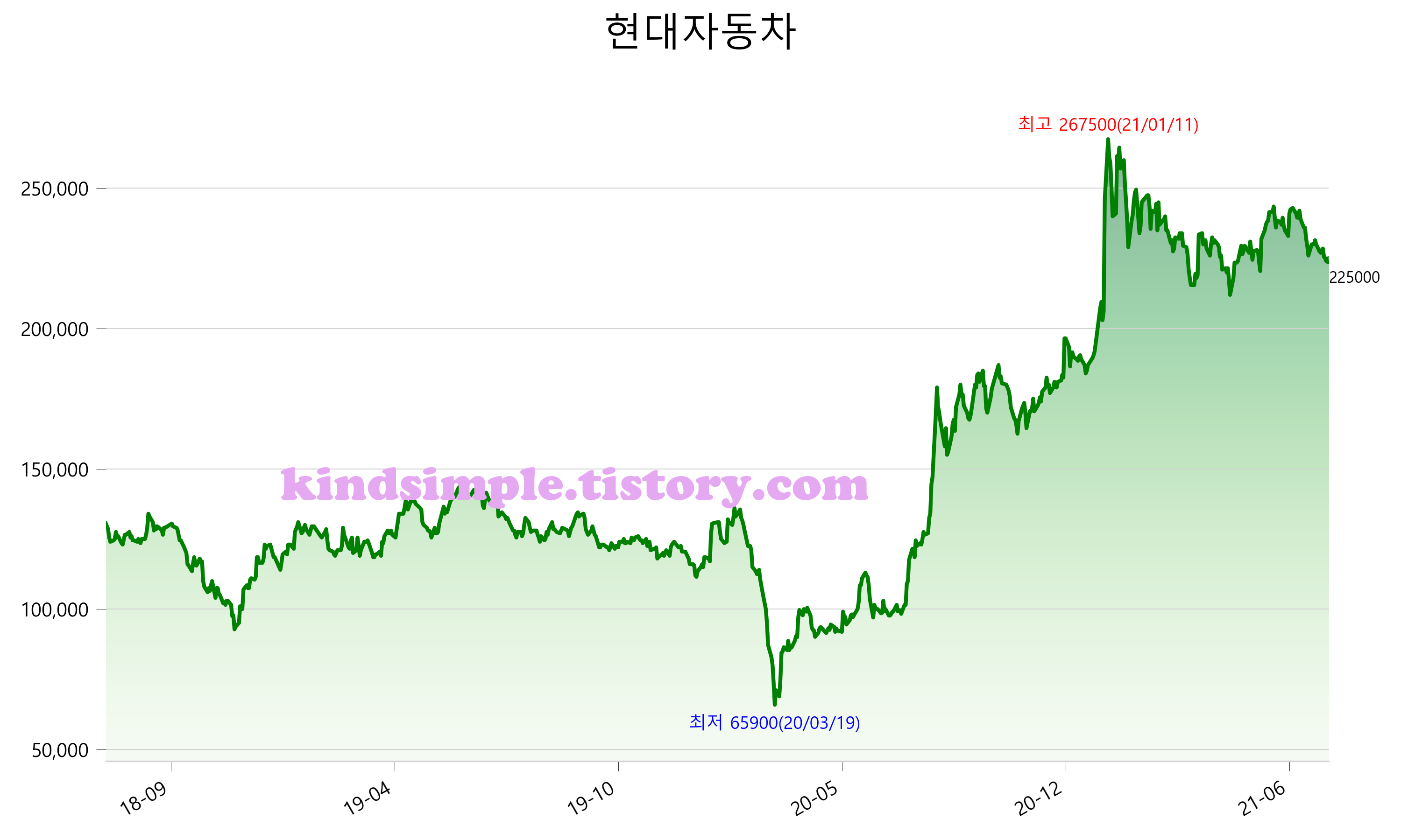 7월 27일 기준 주가는 225,000원 입니다. 아래는 최근 3년간의 주가흐름입니다.