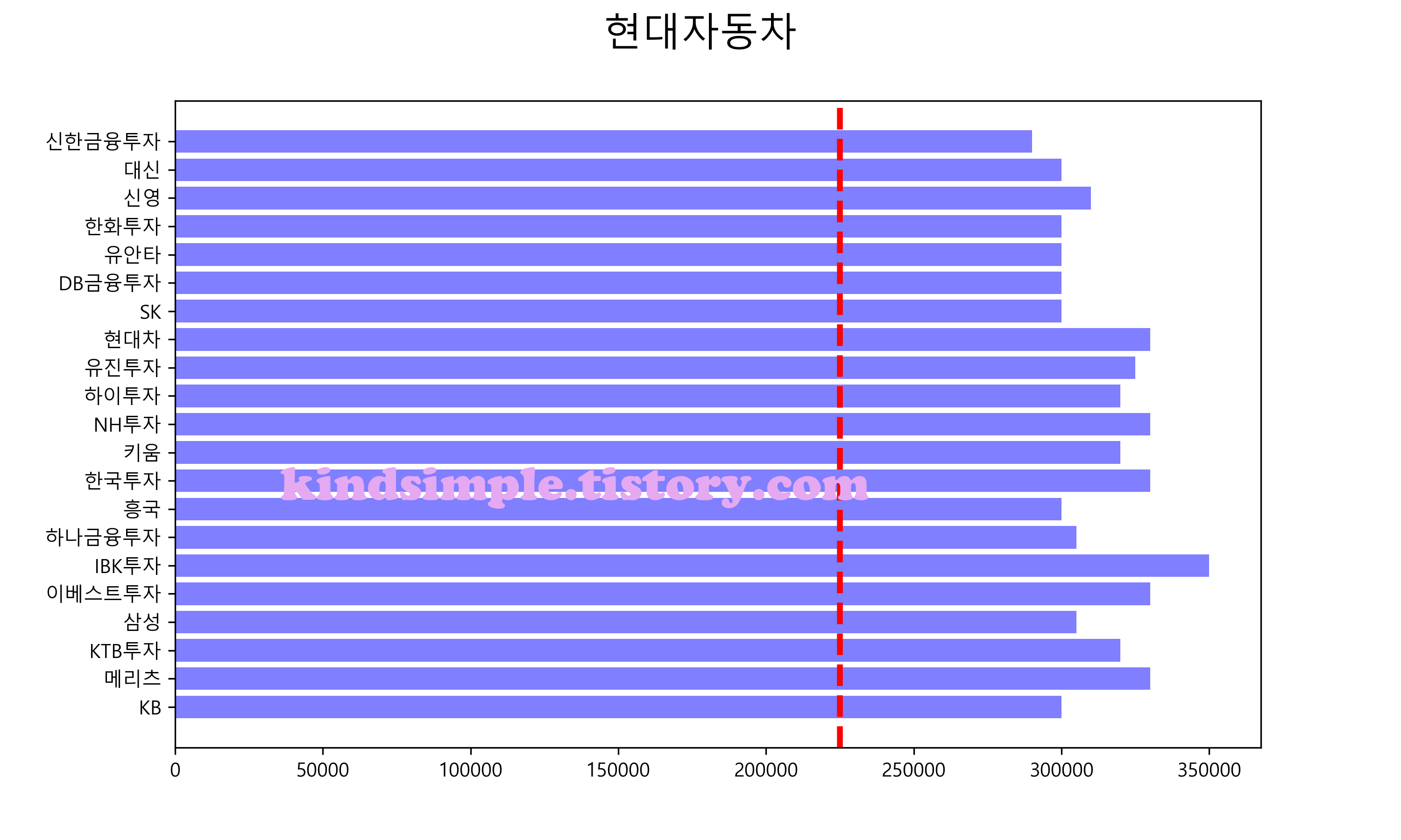 아래 그래프의 빨간색 점선이 현재 주가입니다.