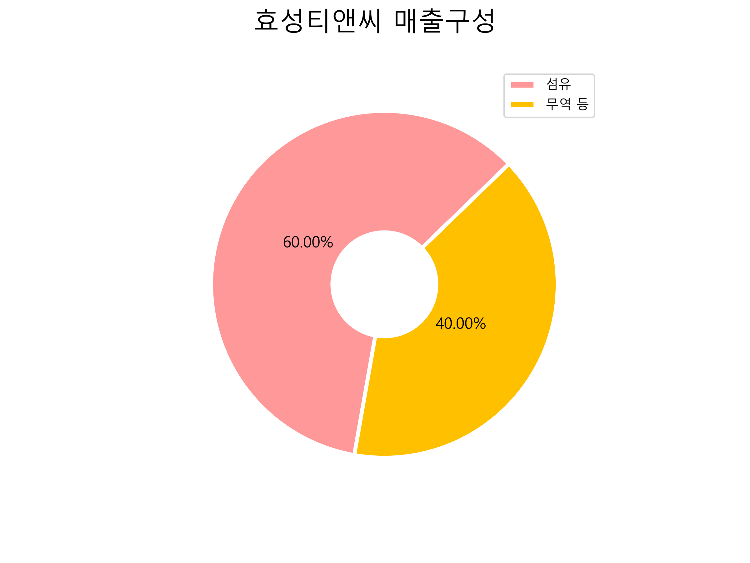 - 효성의 인적분할에 따라 18년 6월 설립, 7월 유가증권시장에 재상장했으며 섬유/무역 사업을 영위하고 있음.