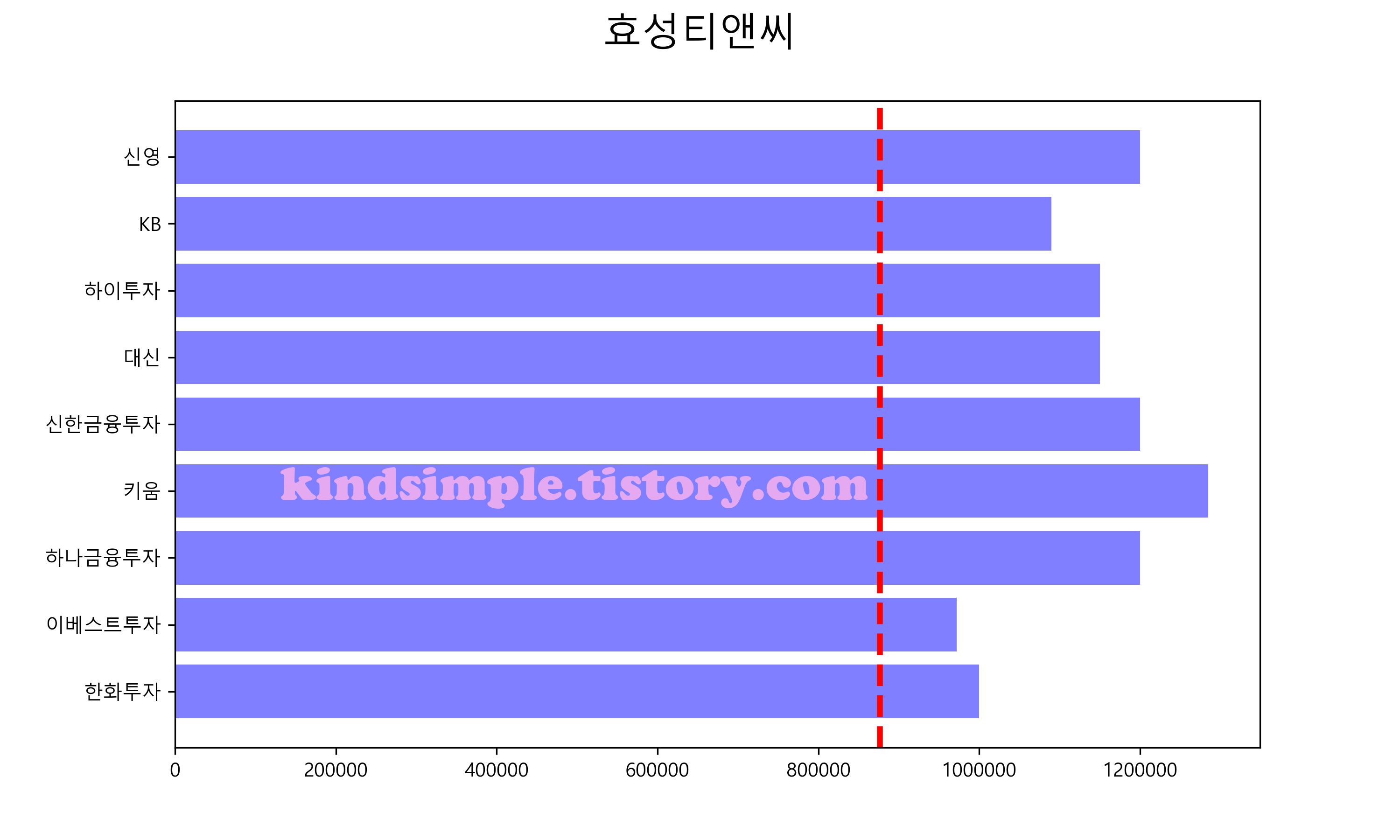 아래 그래프의 빨간색 점선이 현재 주가입니다.