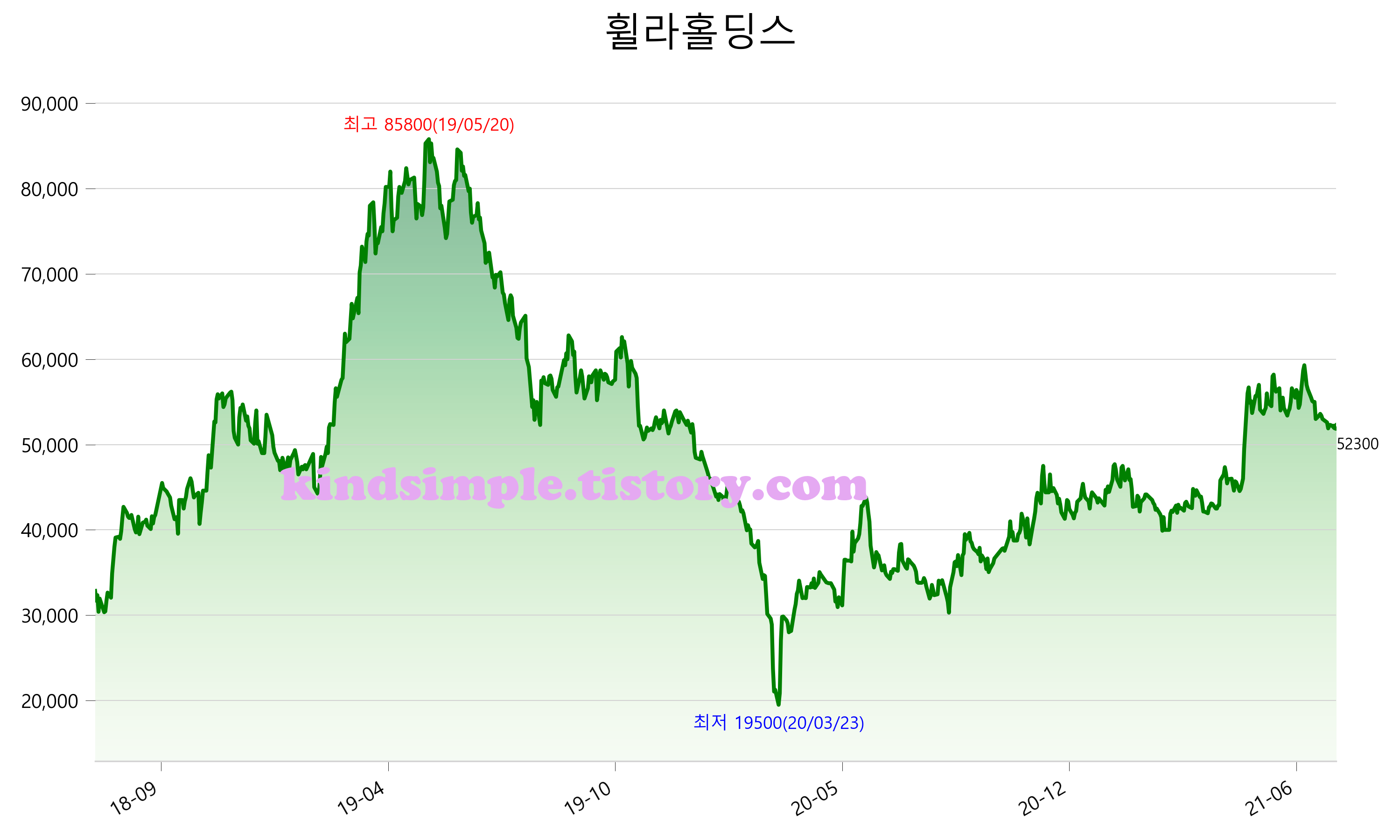 7월 28일 기준 주가는 52,300원 입니다. 아래는 최근 3년간의 주가흐름입니다.