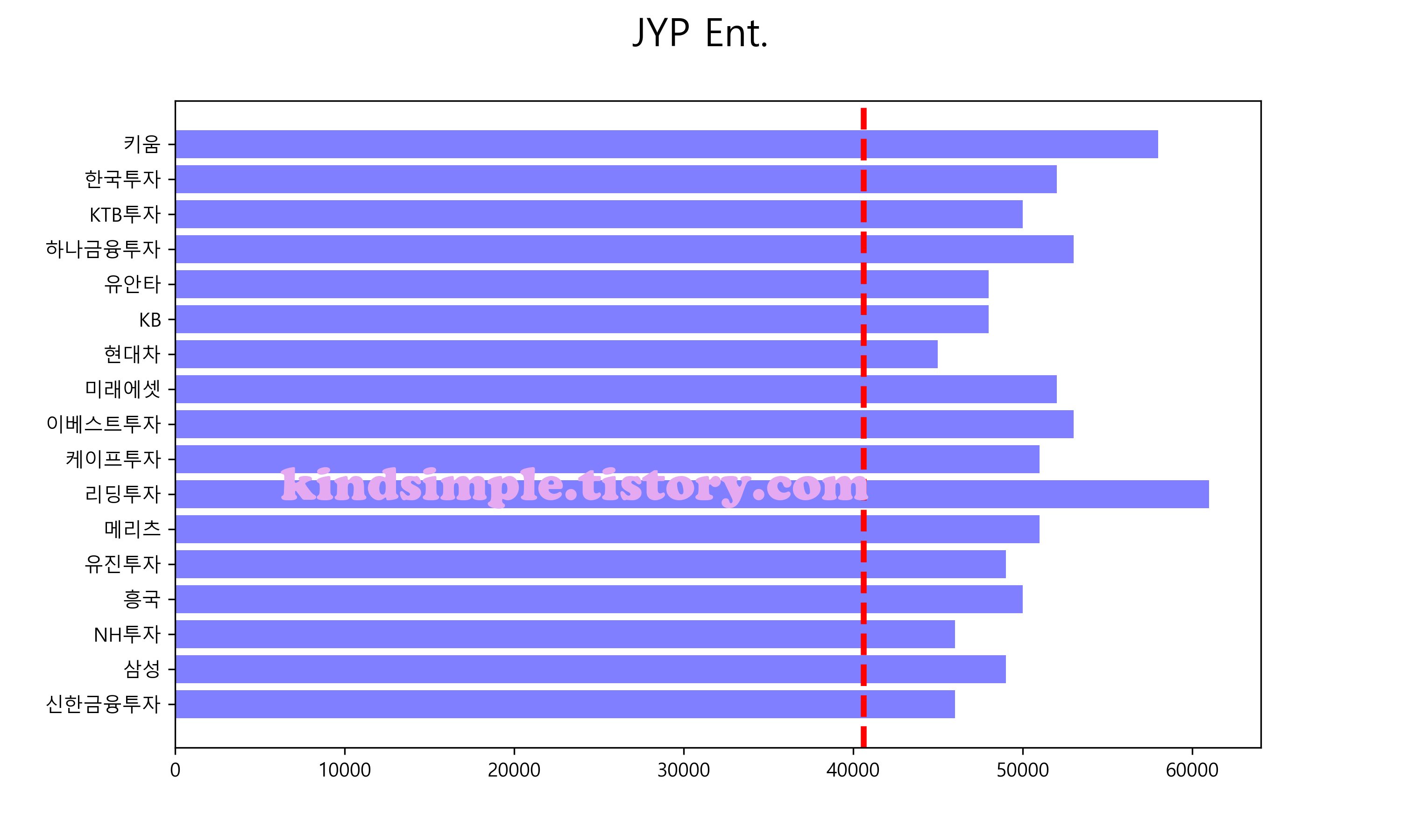 아래 그래프의 빨간색 점선이 현재 주가입니다.