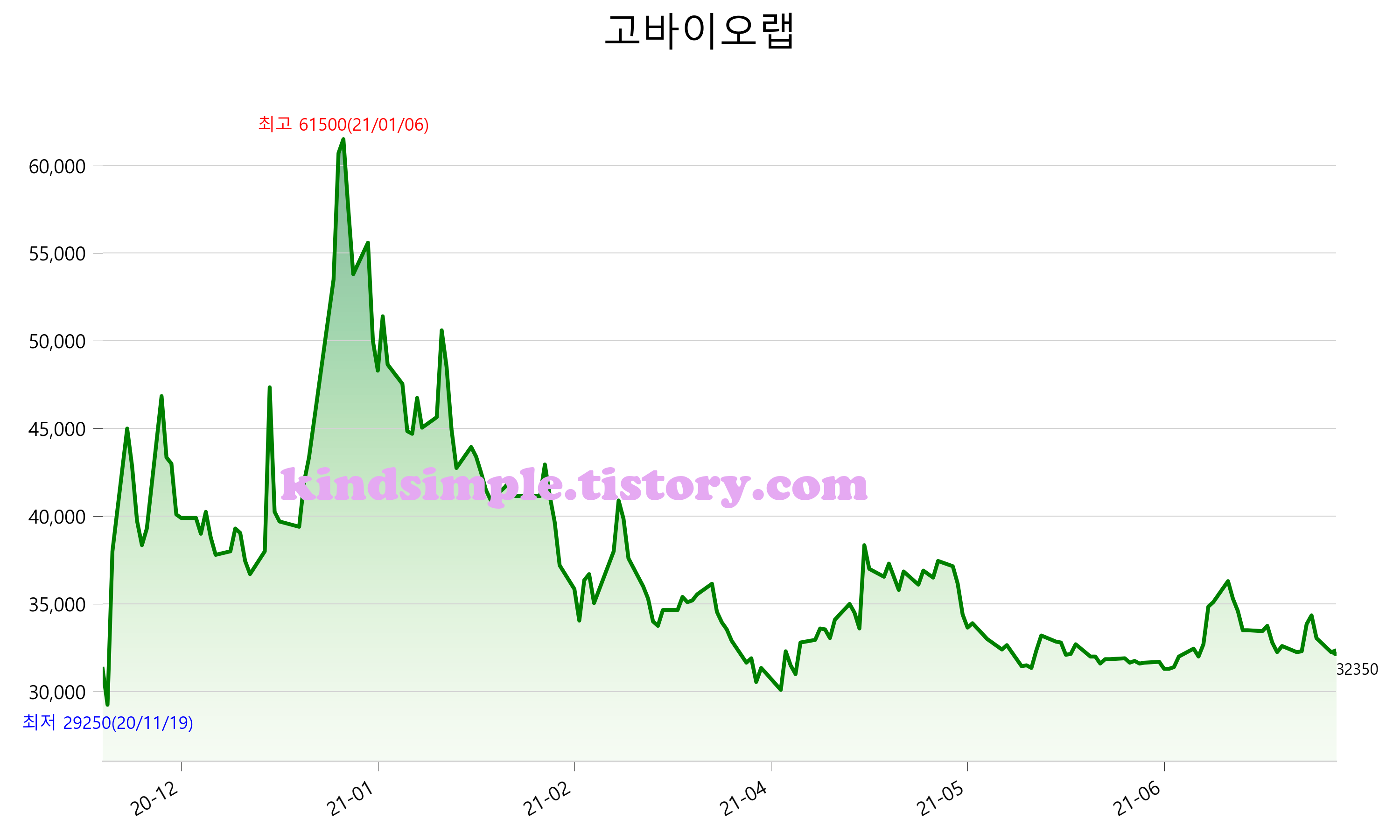 52주 최고가는 61,500원(2021-01-06), 52주 최저가는 29,250원(2020-11-19)으로 52주간 변동률은 3.4% 입니다.