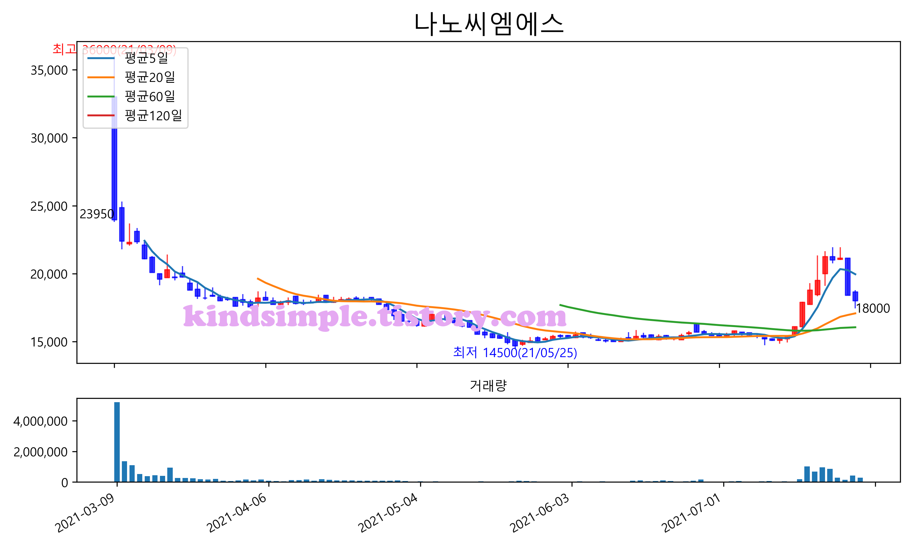 최근 6개월간 캔들차트 및 이동평균선입니다.