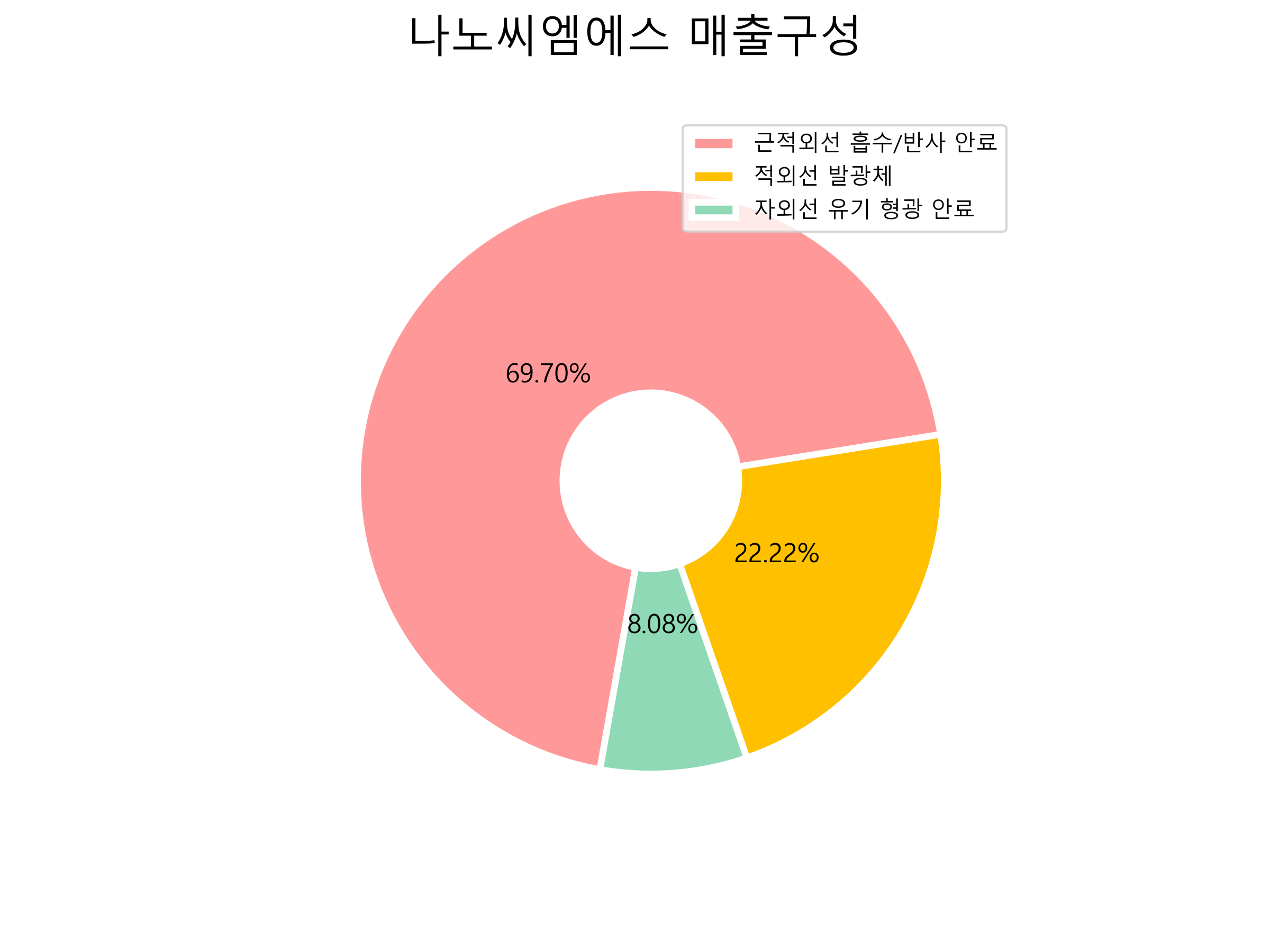 - 나노소재 관련 전자재료용 나노무기소재, 나노금속화합물, 나노유기형광체의 기초연구를 바탕으로 나노신소재 개발 및 제조업을 주요 사업으로 영위하고 있음.