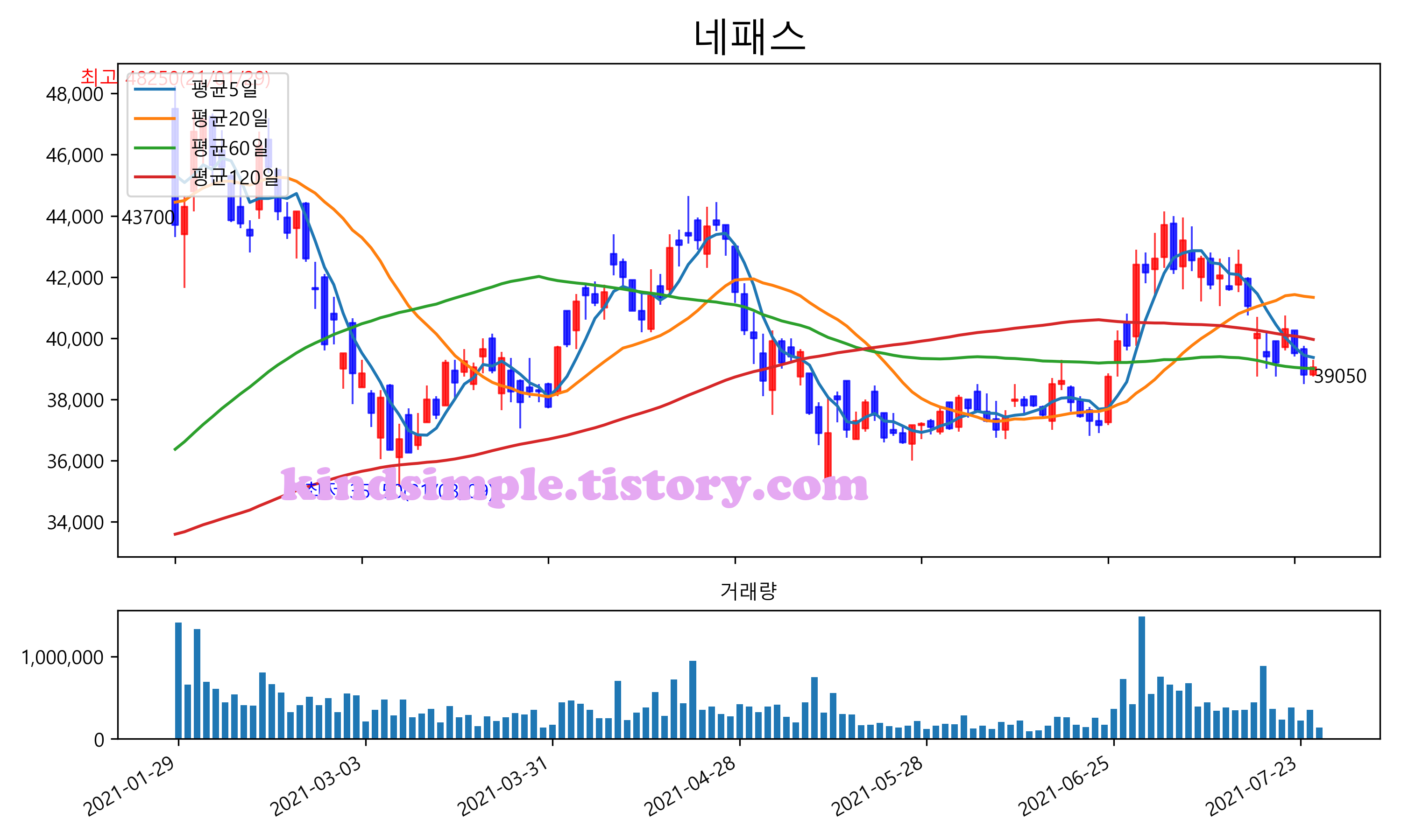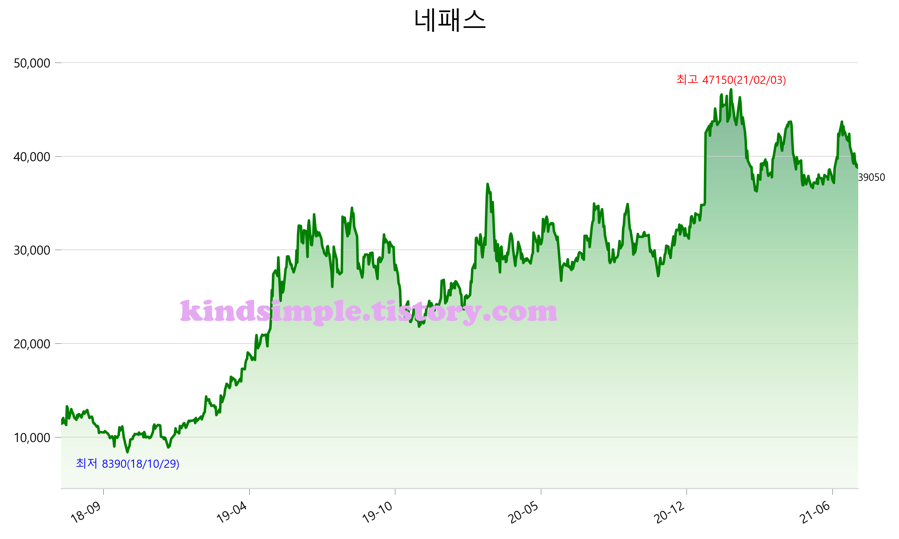 7월 28일 기준 주가는 39,050원 입니다. 아래는 최근 3년간의 주가흐름입니다.
