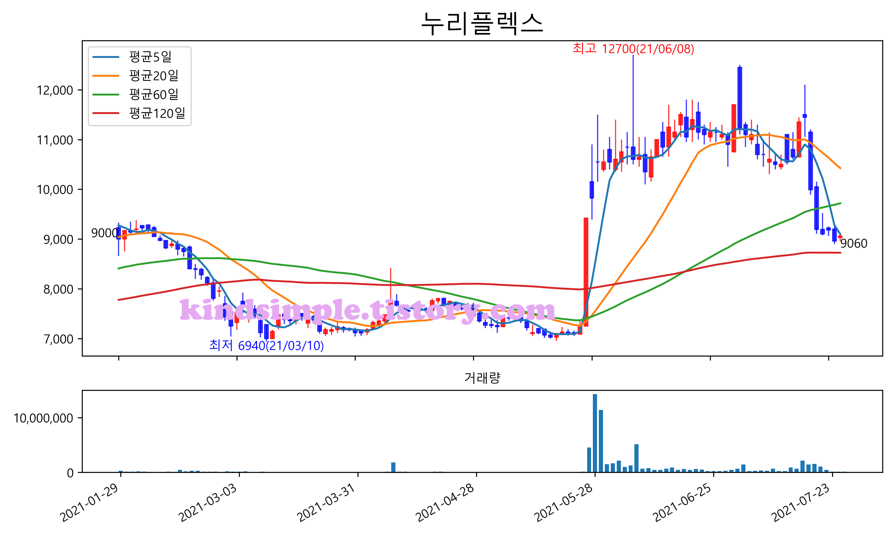 최근 6개월간 캔들차트 및 이동평균선입니다.
