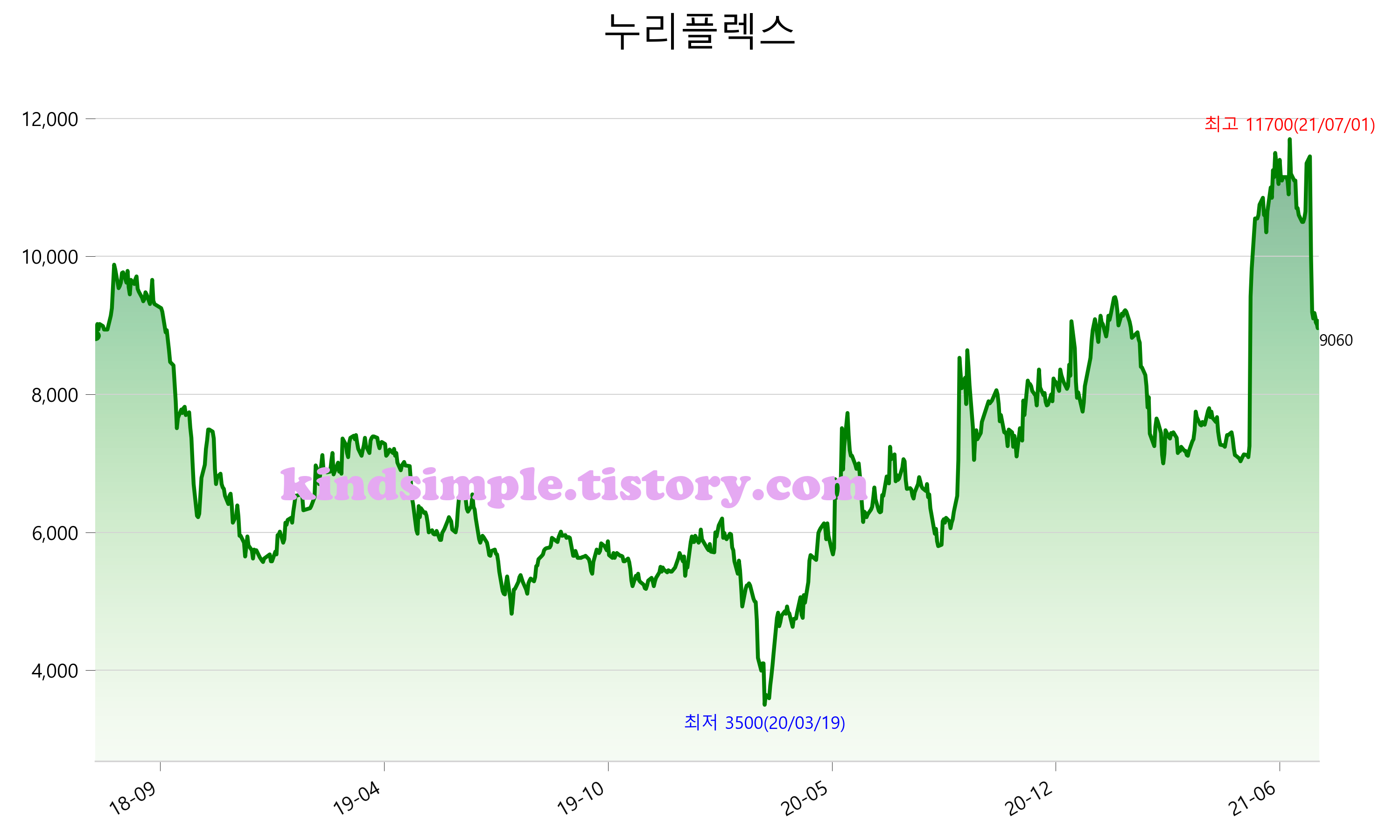 7월 28일 기준 주가는 9,060원 입니다. 아래는 최근 3년간의 주가흐름입니다.