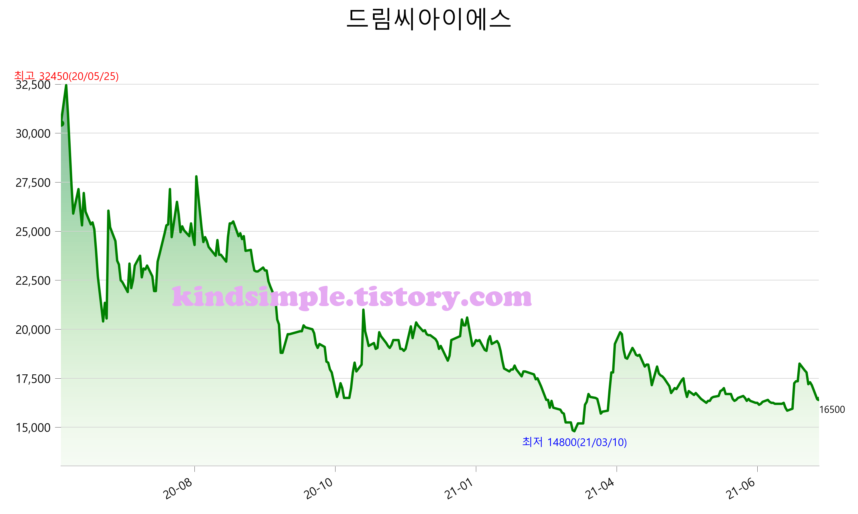 7월 28일 기준 주가는 16,500원 입니다. 아래는 최근 3년간의 주가흐름입니다.