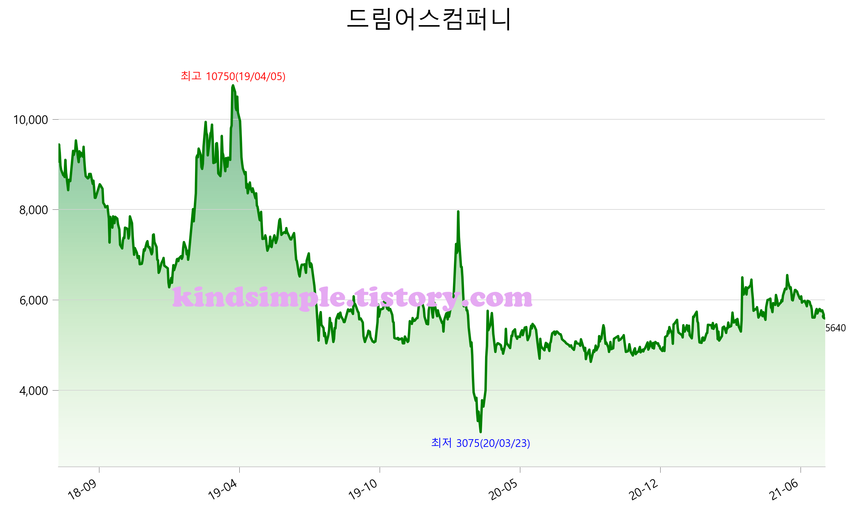 7월 28일 기준 주가는 5,640원 입니다. 아래는 최근 3년간의 주가흐름입니다.