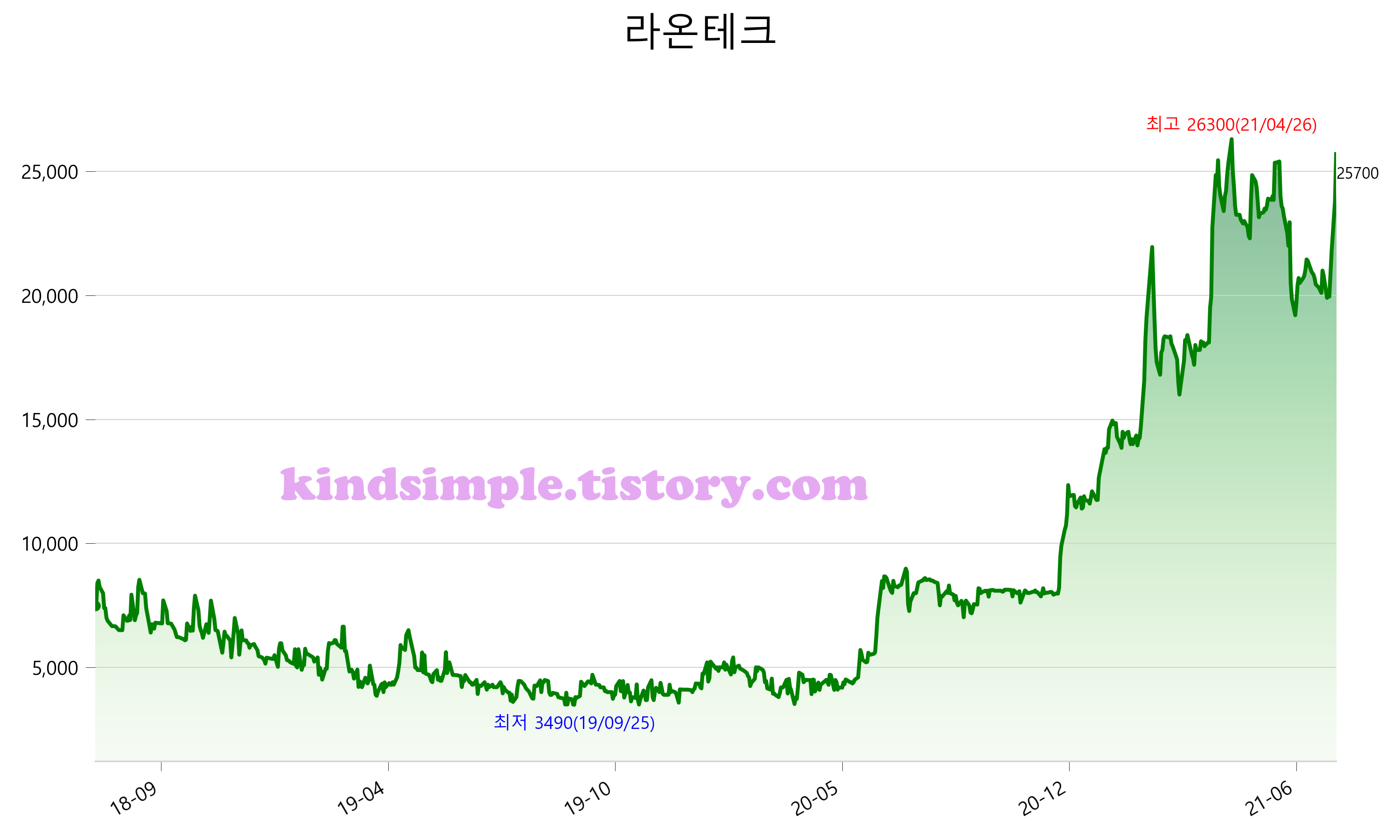 - 2016년 수원 신축사옥으로의 본사 이전을 통한 경영환경 개선 및 업무효율성 증대를 통해 생산CAPA를 크게 향상시켰으며, 나온테크에서 라온테크로 사명을 변경함.