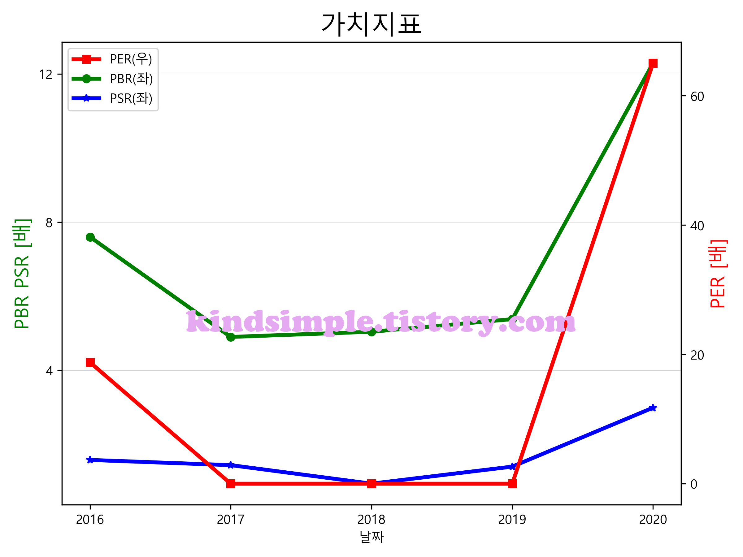 - PER : 132.47배, 동일업종 PER : 16.59배