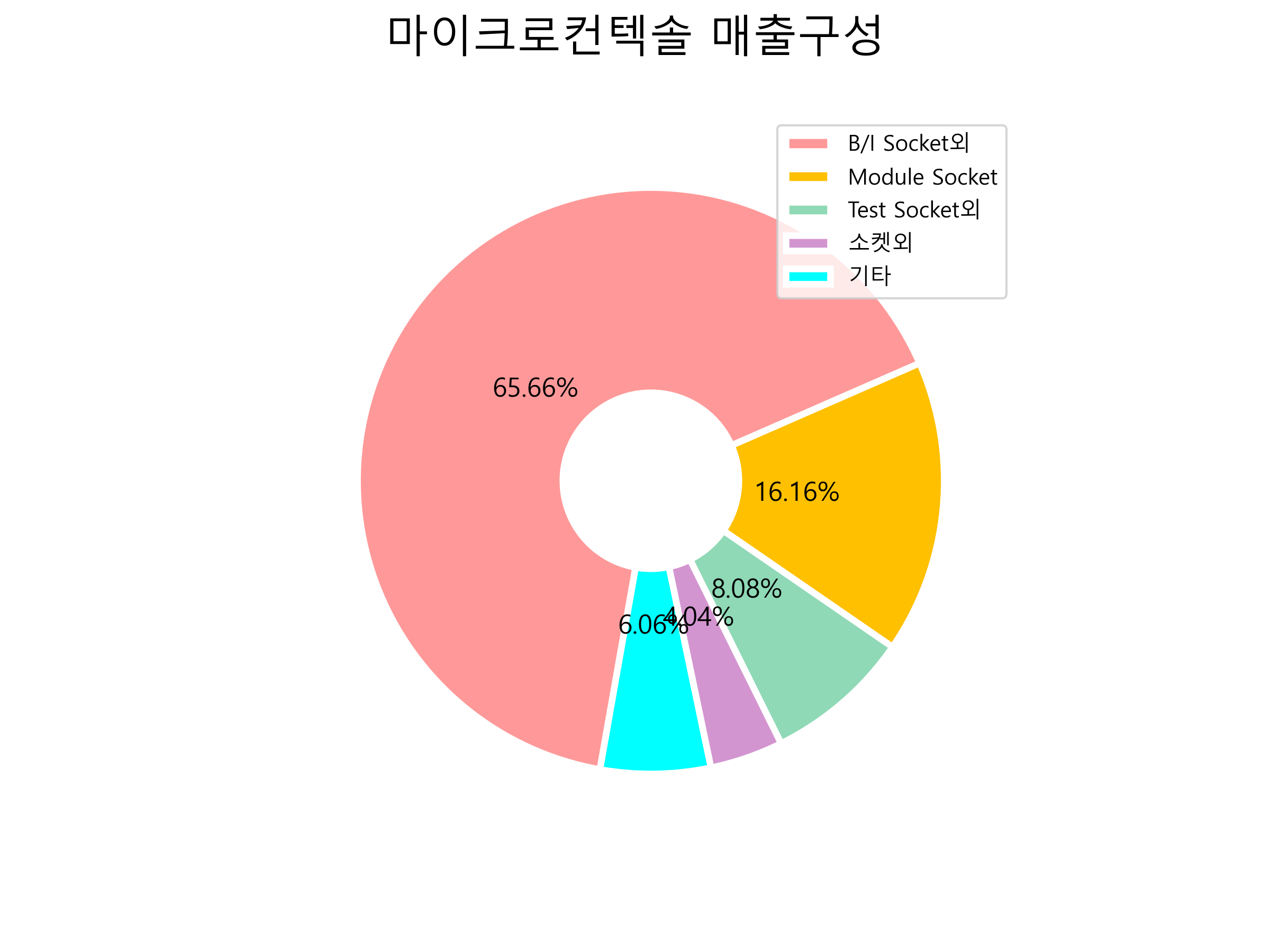 - 매출비중은 B/I소켓 65.26%, Module소켓 16.09% 등으로 구성됨.