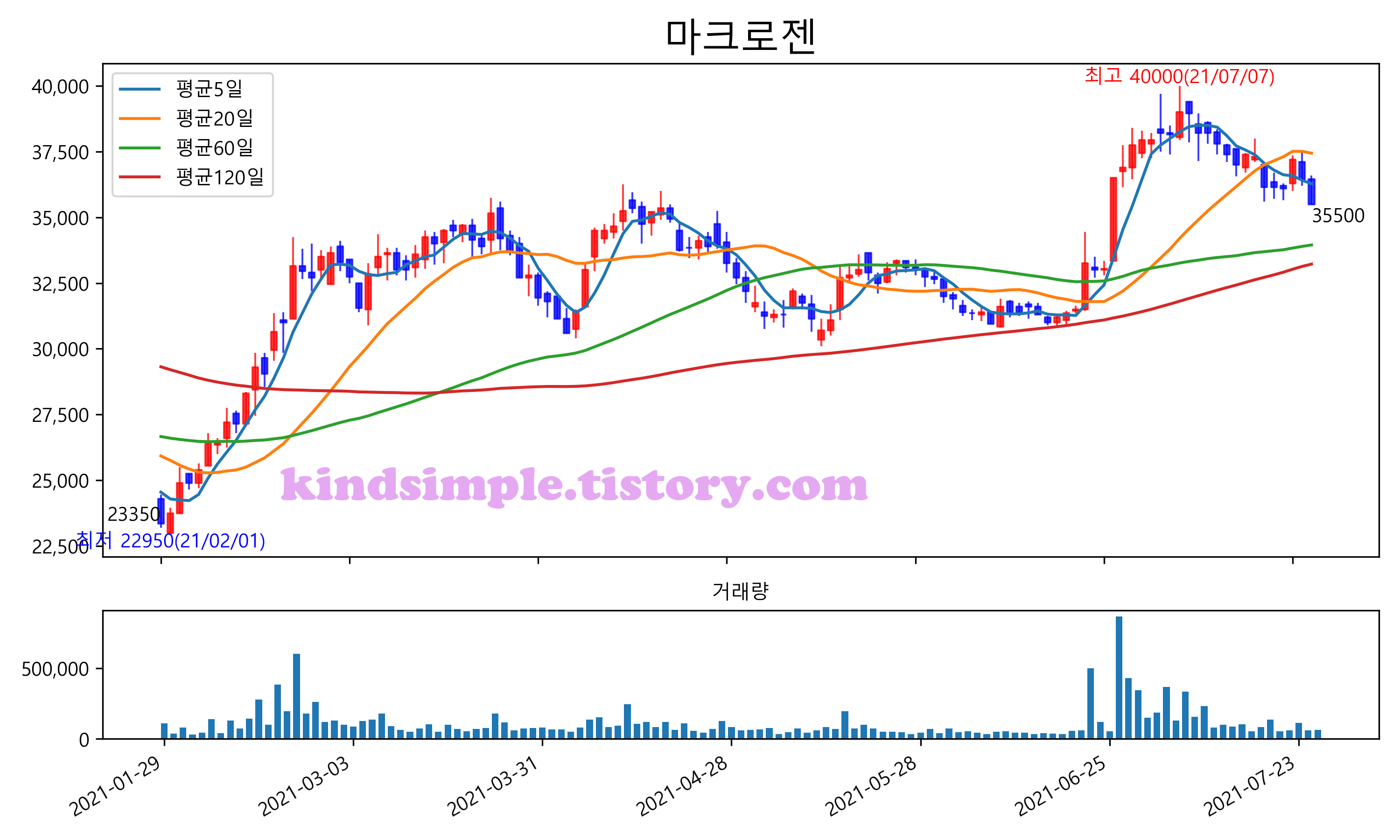 최근 6개월간 캔들차트 및 이동평균선입니다.