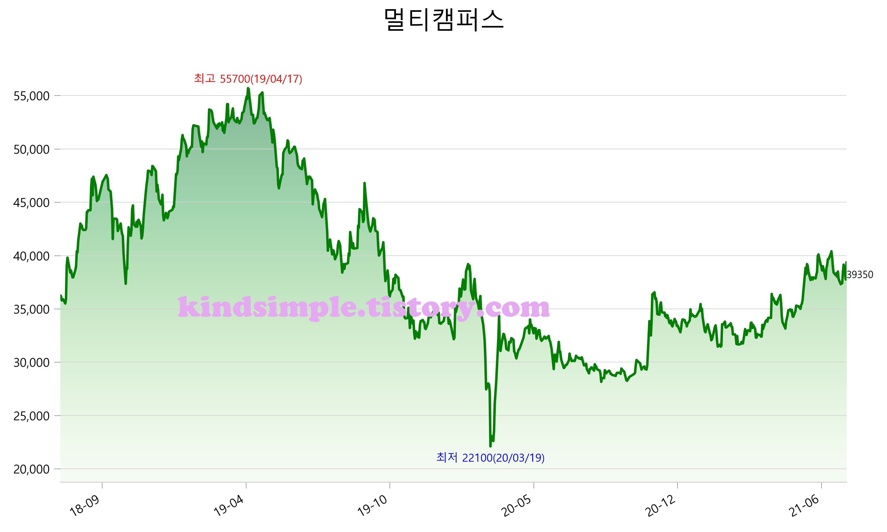 7월 28일 기준 주가는 39,350원 입니다. 아래는 최근 3년간의 주가흐름입니다.