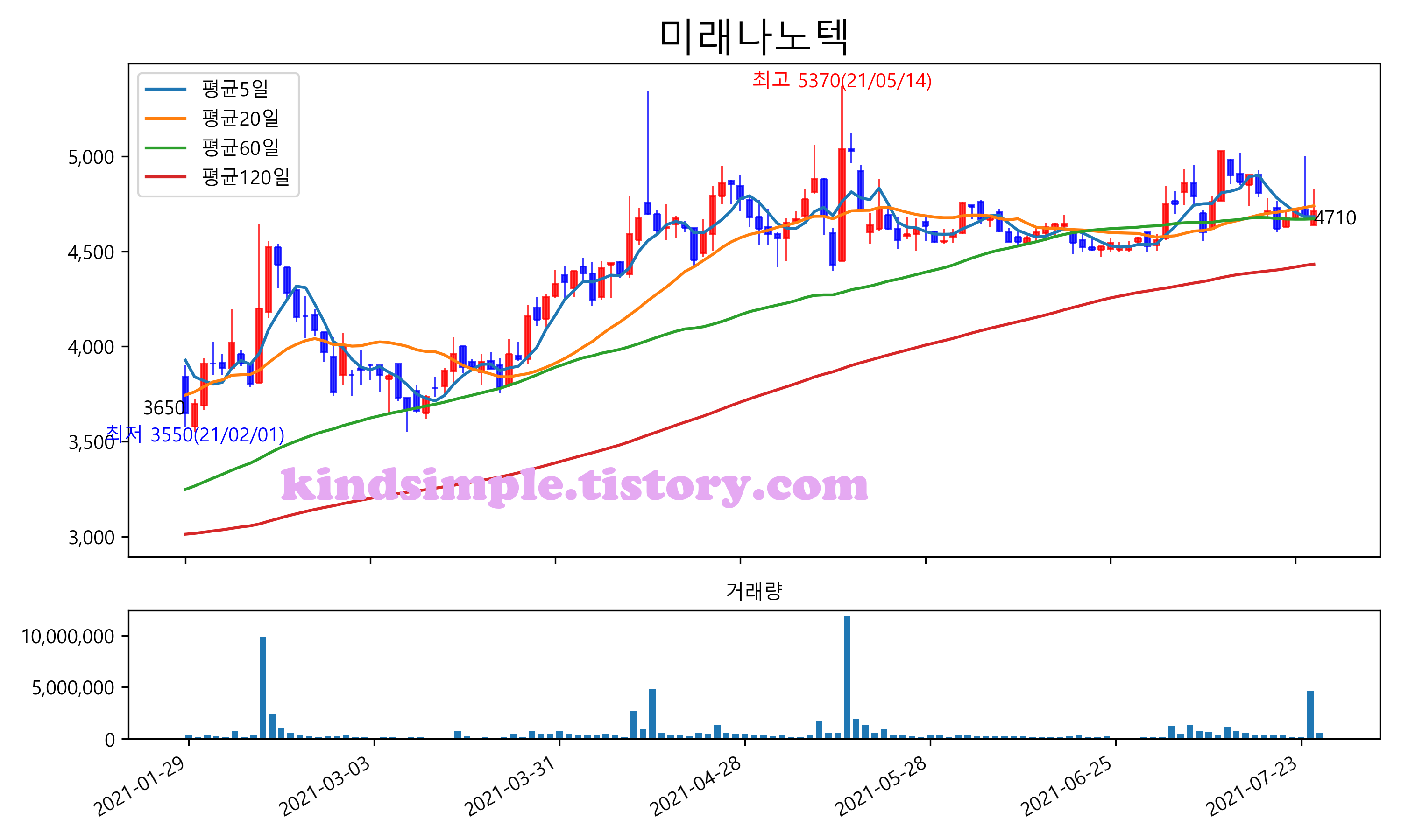 7월 28일 기준 주가는 4,710원 입니다. 아래는 최근 3년간의 주가흐름입니다.