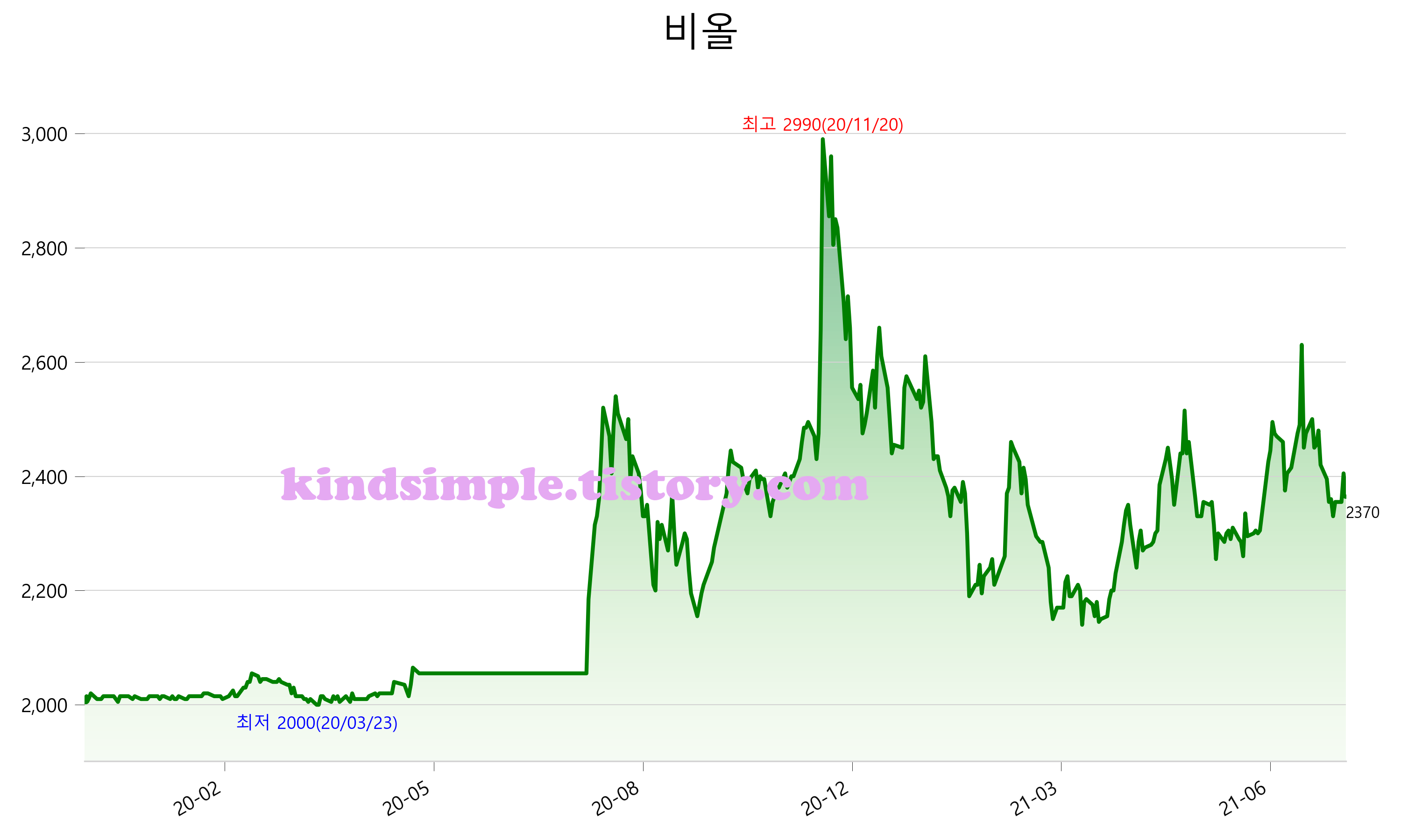 52주 최고가는 2,990원(2020-11-20), 52주 최저가는 2,055원(2020-07-29)으로 52주간 변동률은 15.3% 입니다.