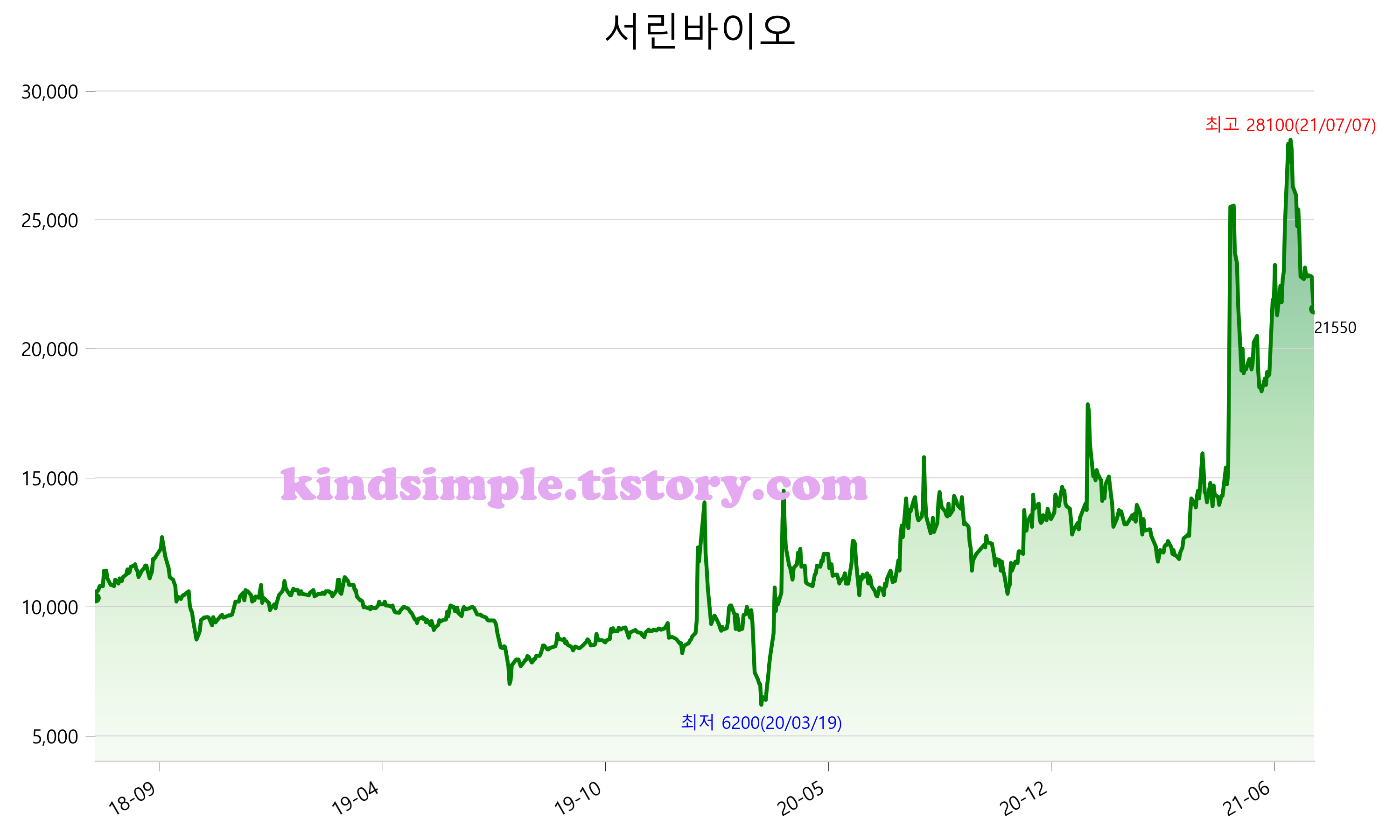 7월 28일 기준 주가는 21,550원 입니다. 아래는 최근 3년간의 주가흐름입니다.