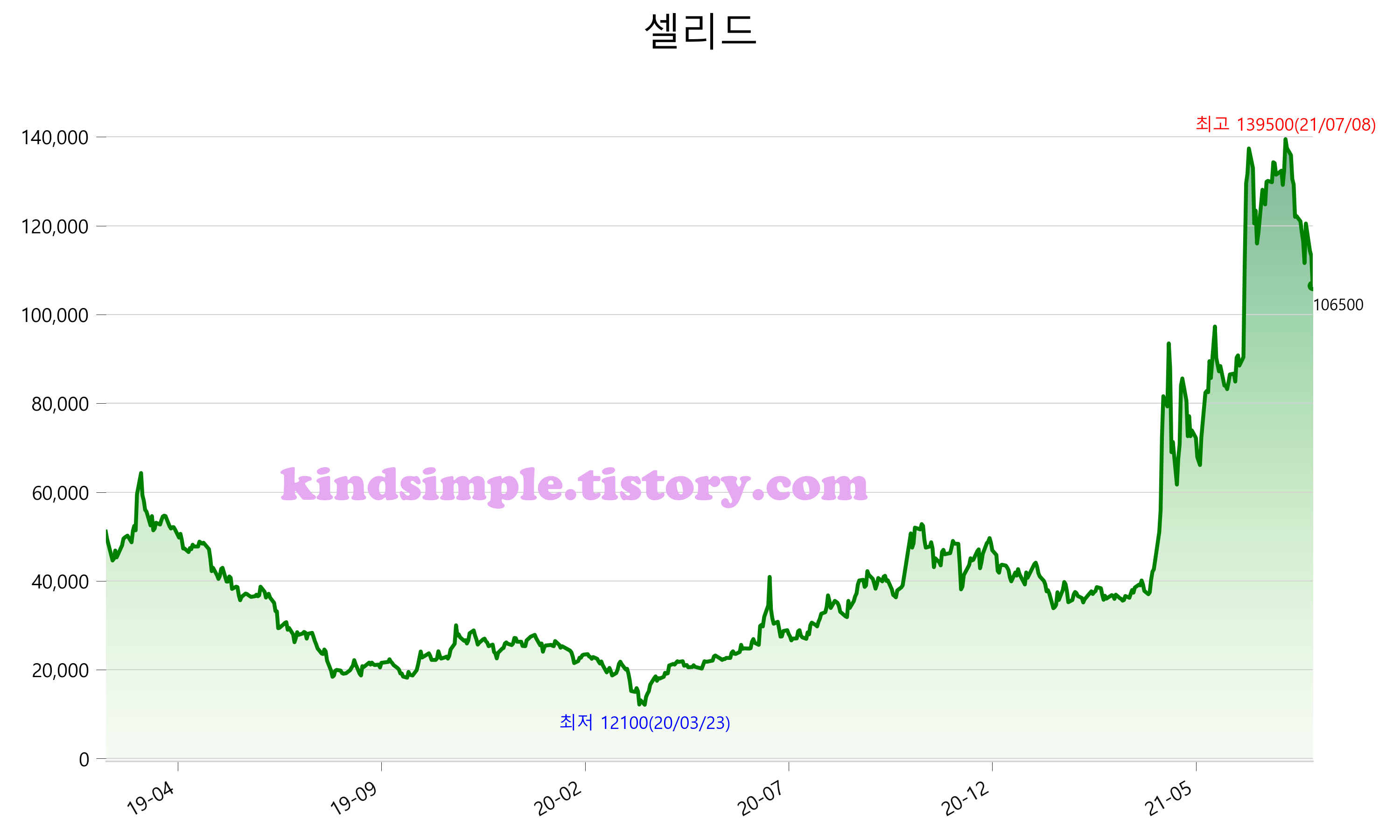 52주 최고가는 139,500원(2021-07-08), 52주 최저가는 30,800원(2020-07-29)으로 52주간 변동률은 245.8% 입니다.
