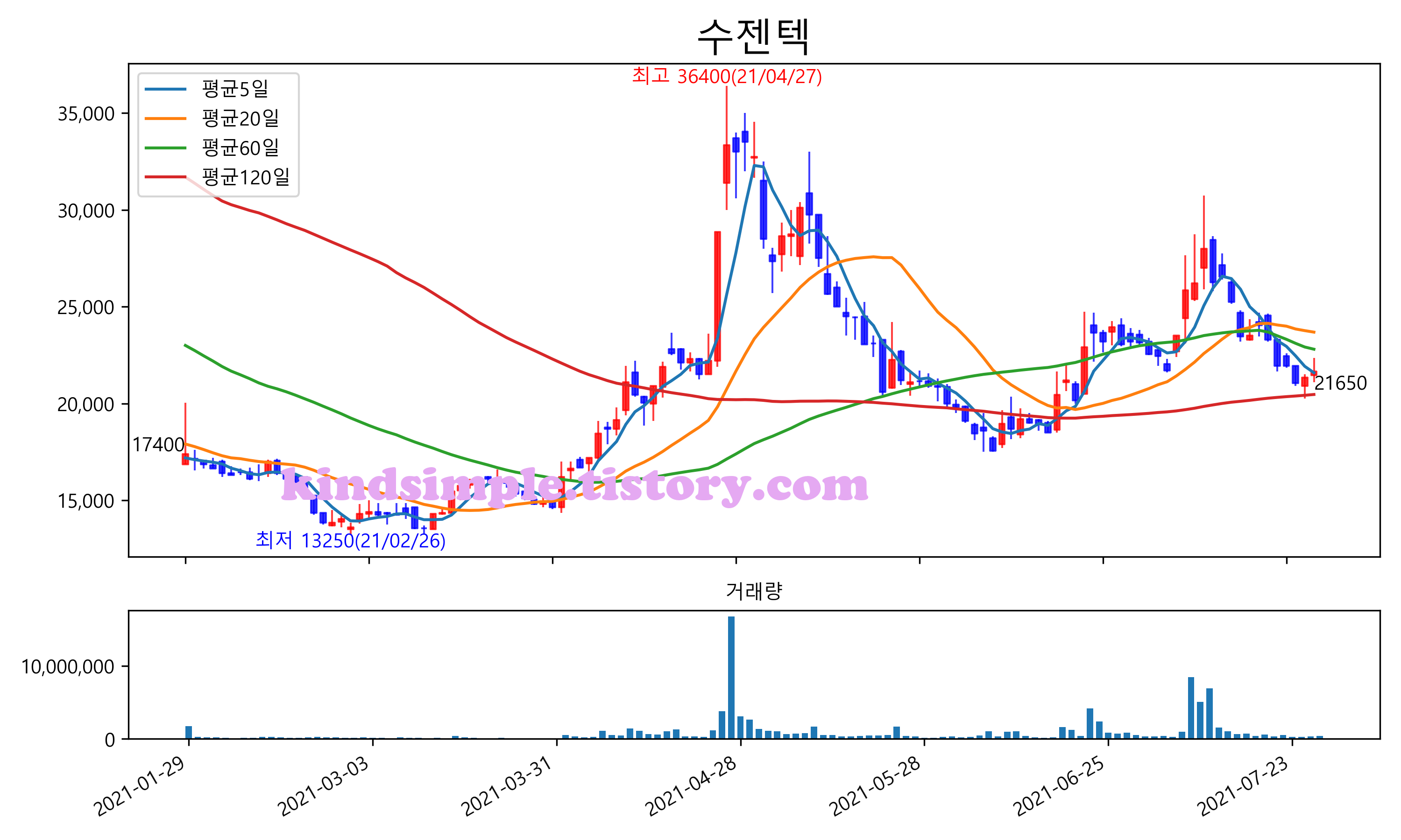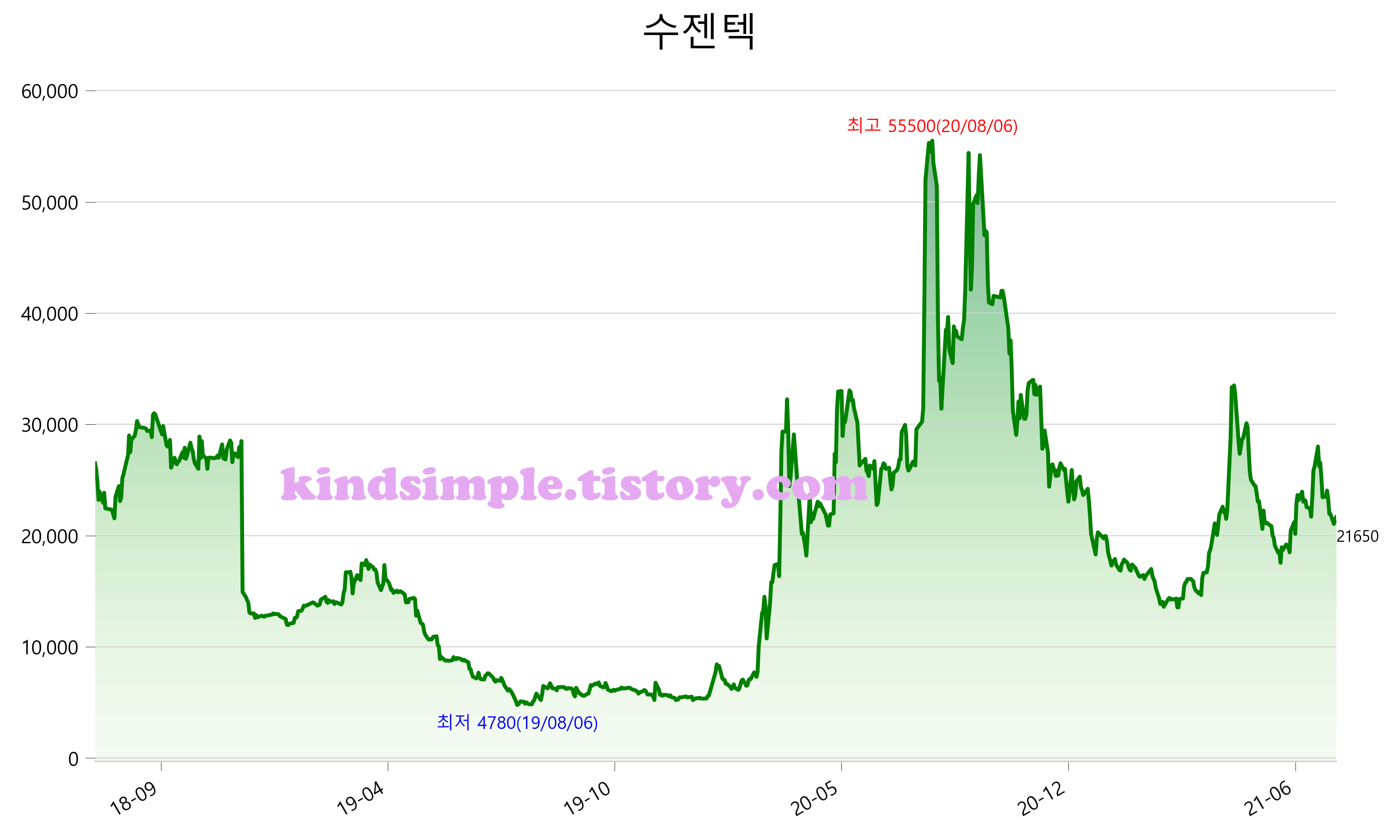 7월 28일 기준 주가는 21,650원 입니다. 아래는 최근 3년간의 주가흐름입니다.