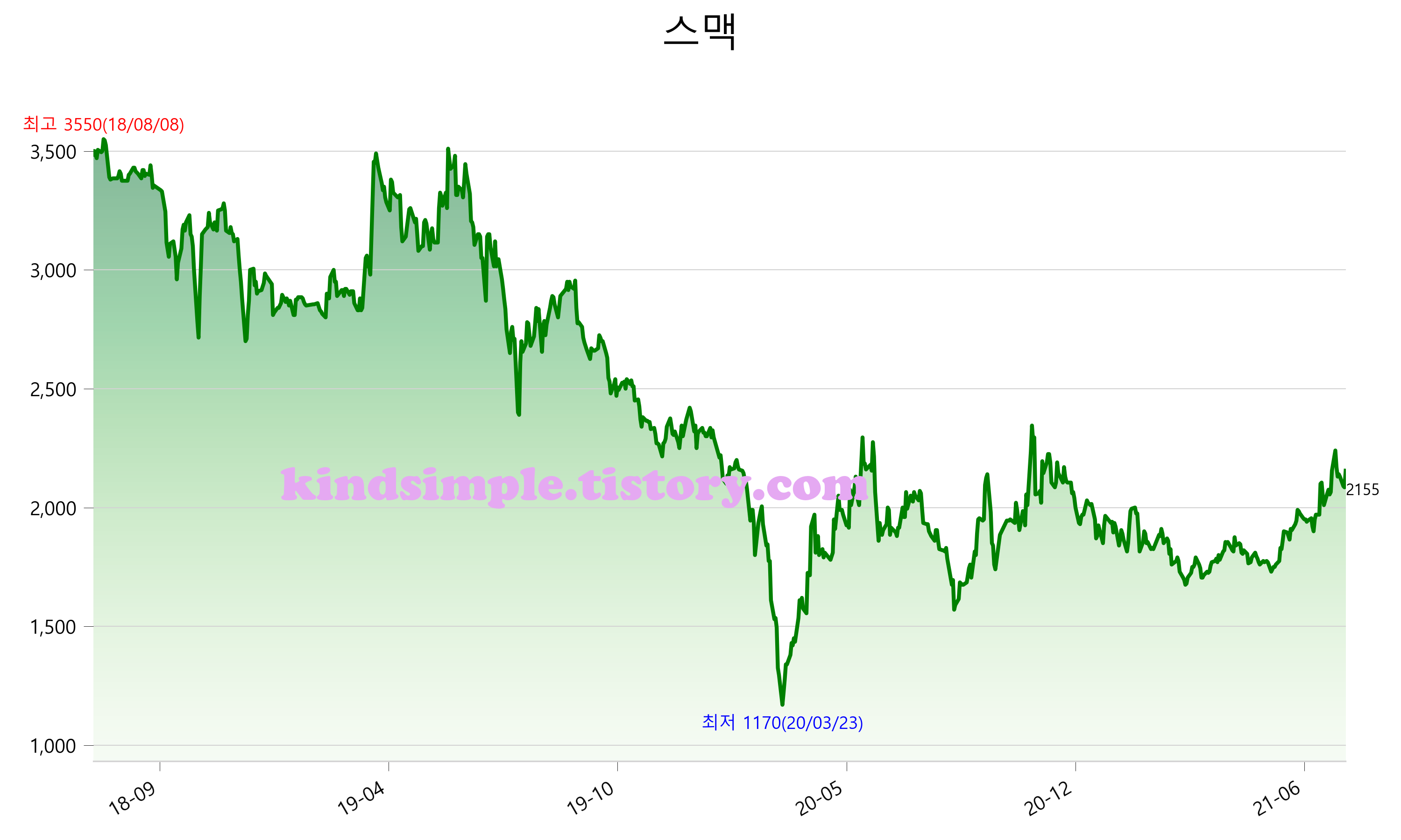 7월 28일 기준 주가는 2,155원 입니다. 아래는 최근 3년간의 주가흐름입니다.