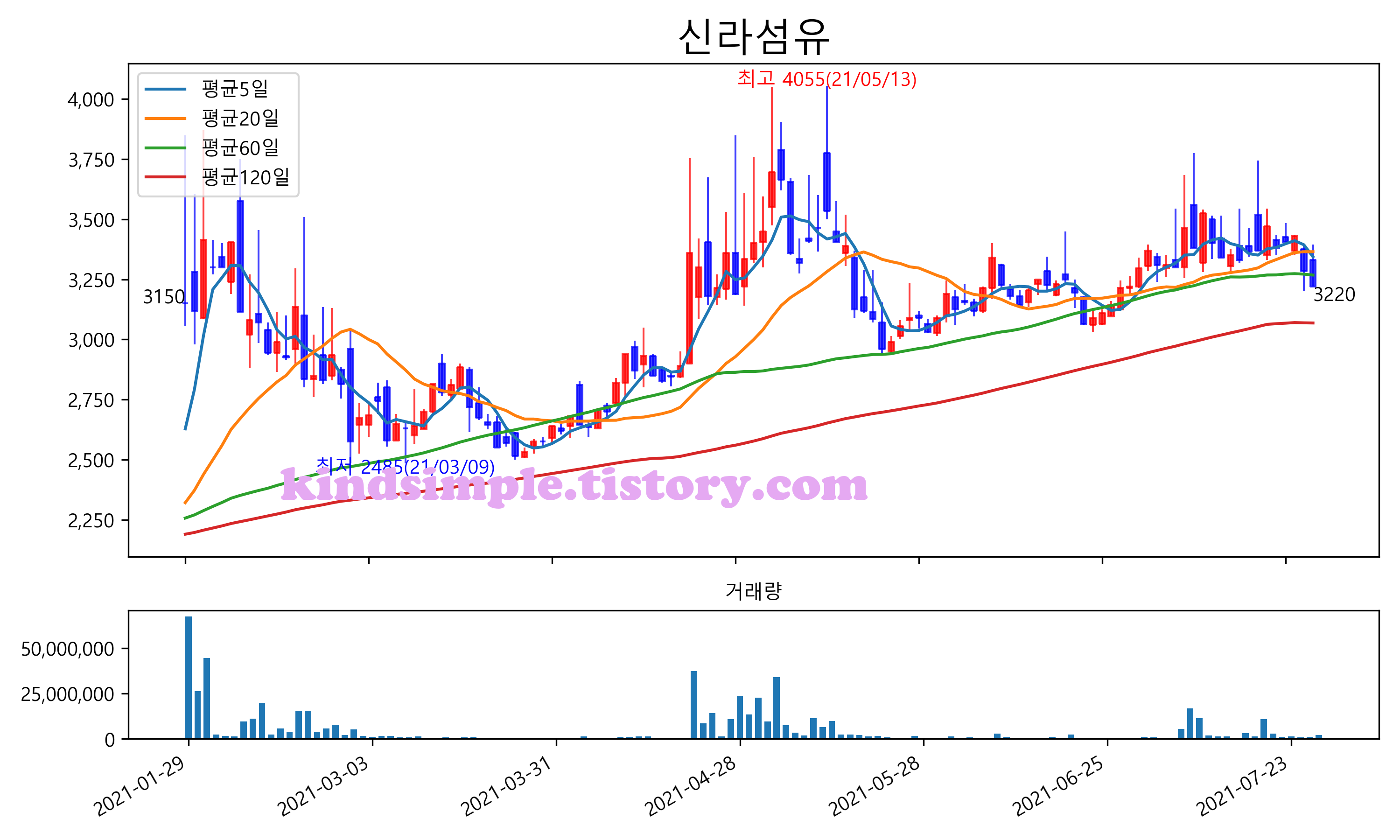 최근 6개월간 캔들차트 및 이동평균선입니다.