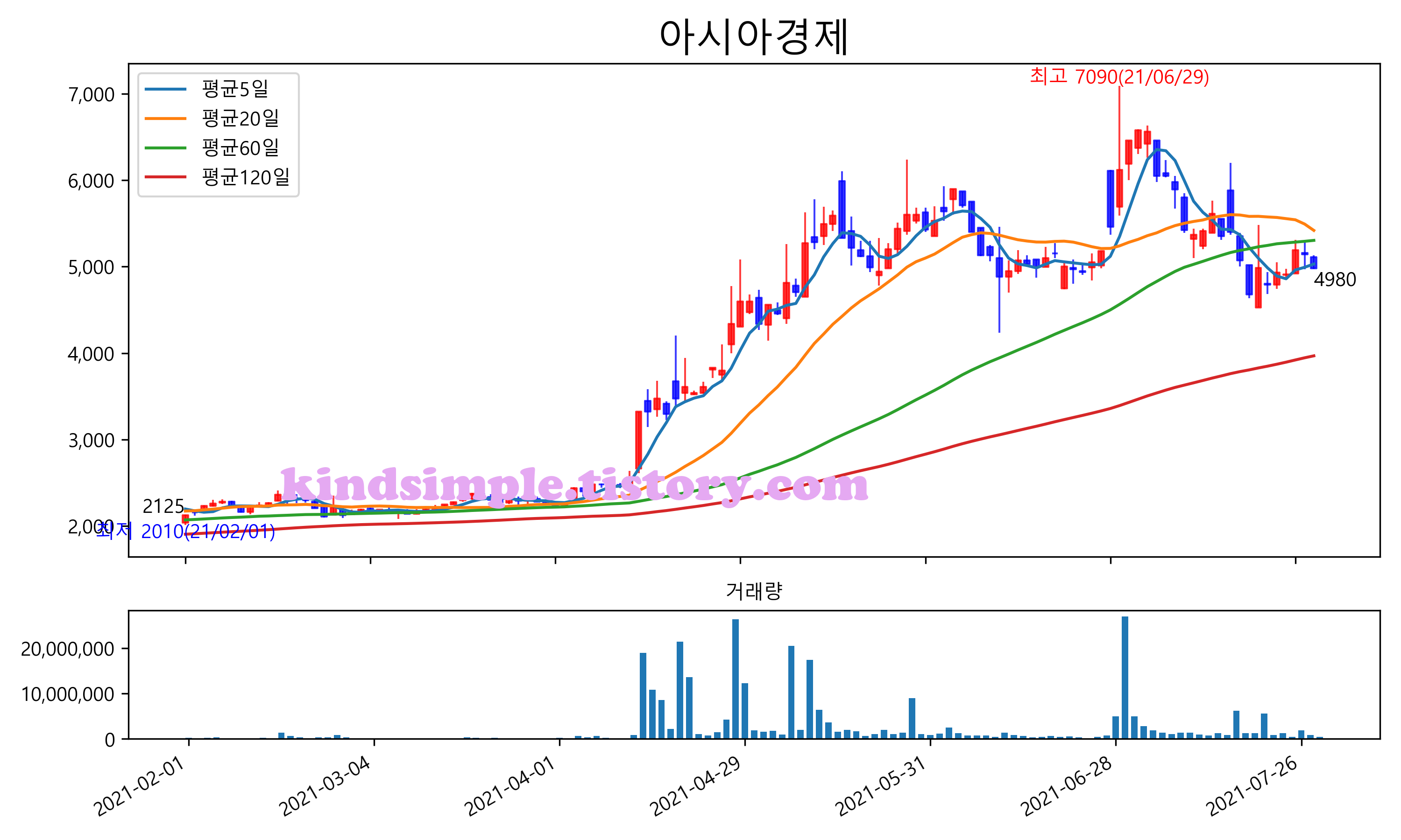 최근 6개월간 캔들차트 및 이동평균선입니다.