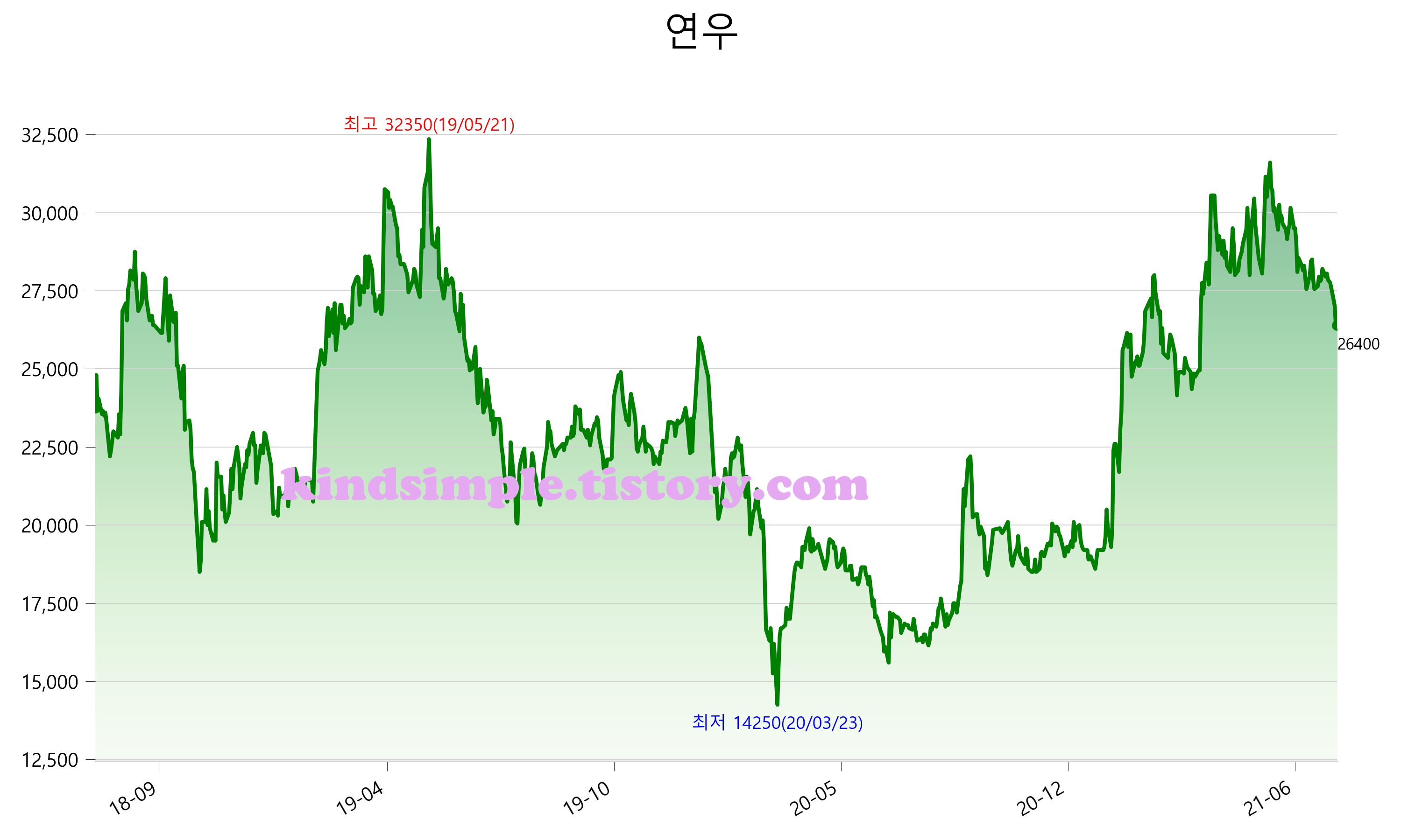 7월 29일 기준 주가는 26,400원 입니다. 아래는 최근 3년간의 주가흐름입니다.