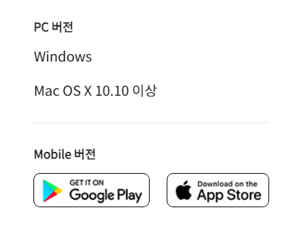 우측 상단에 다운로드를 클릭해줍니다. 그럼 아래와 같이 Windows 또는 Mac OS 를 선택해야 합니다.