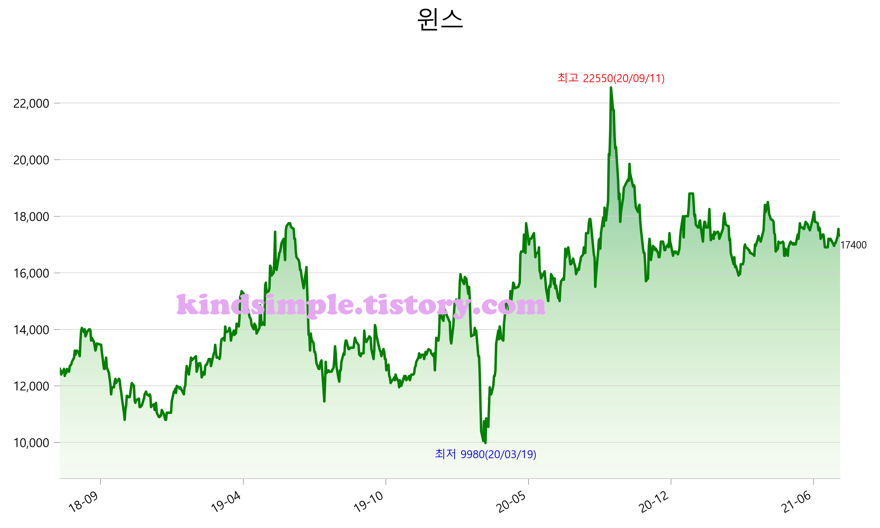 7월 29일 기준 주가는 17,400원 입니다. 아래는 최근 3년간의 주가흐름입니다.
