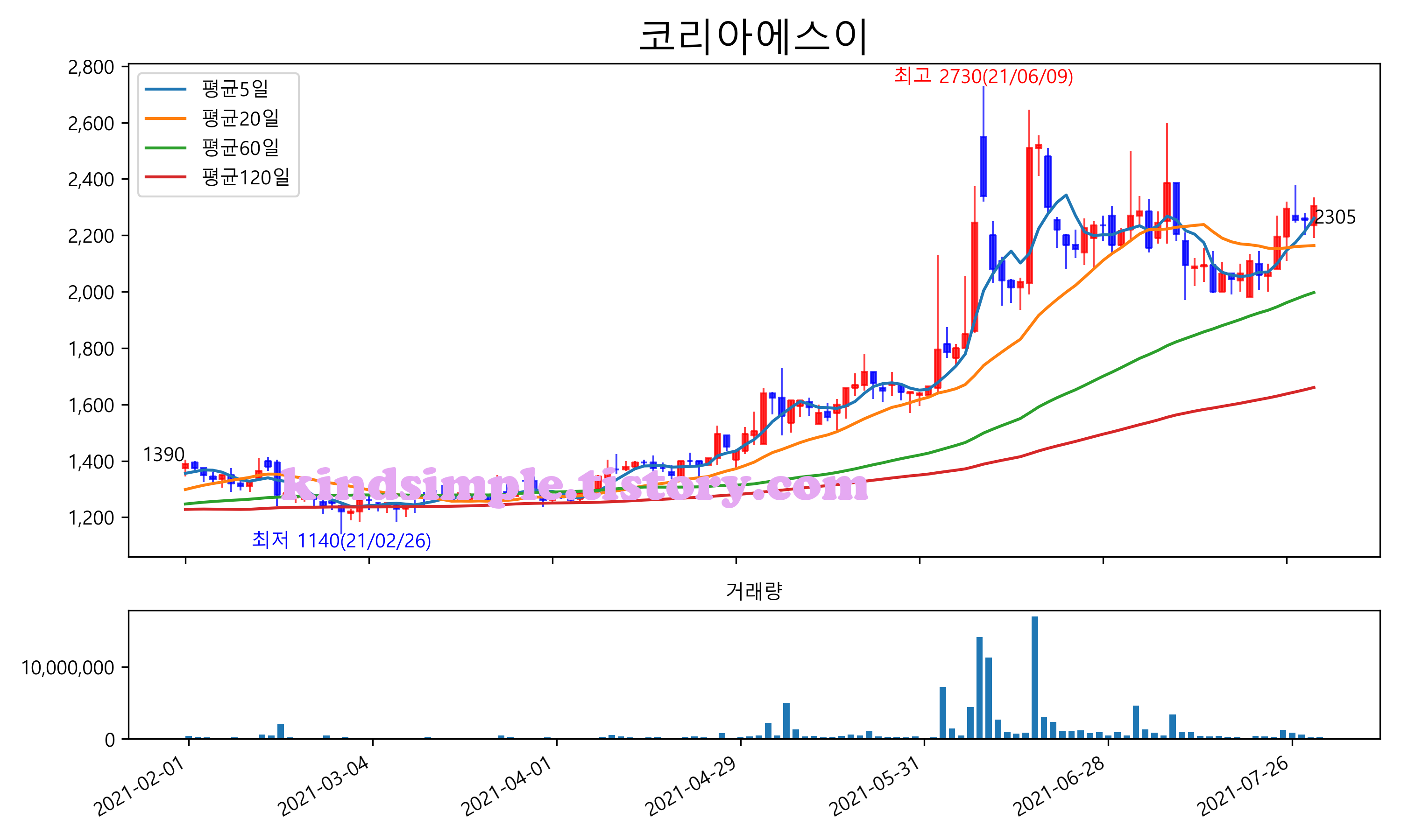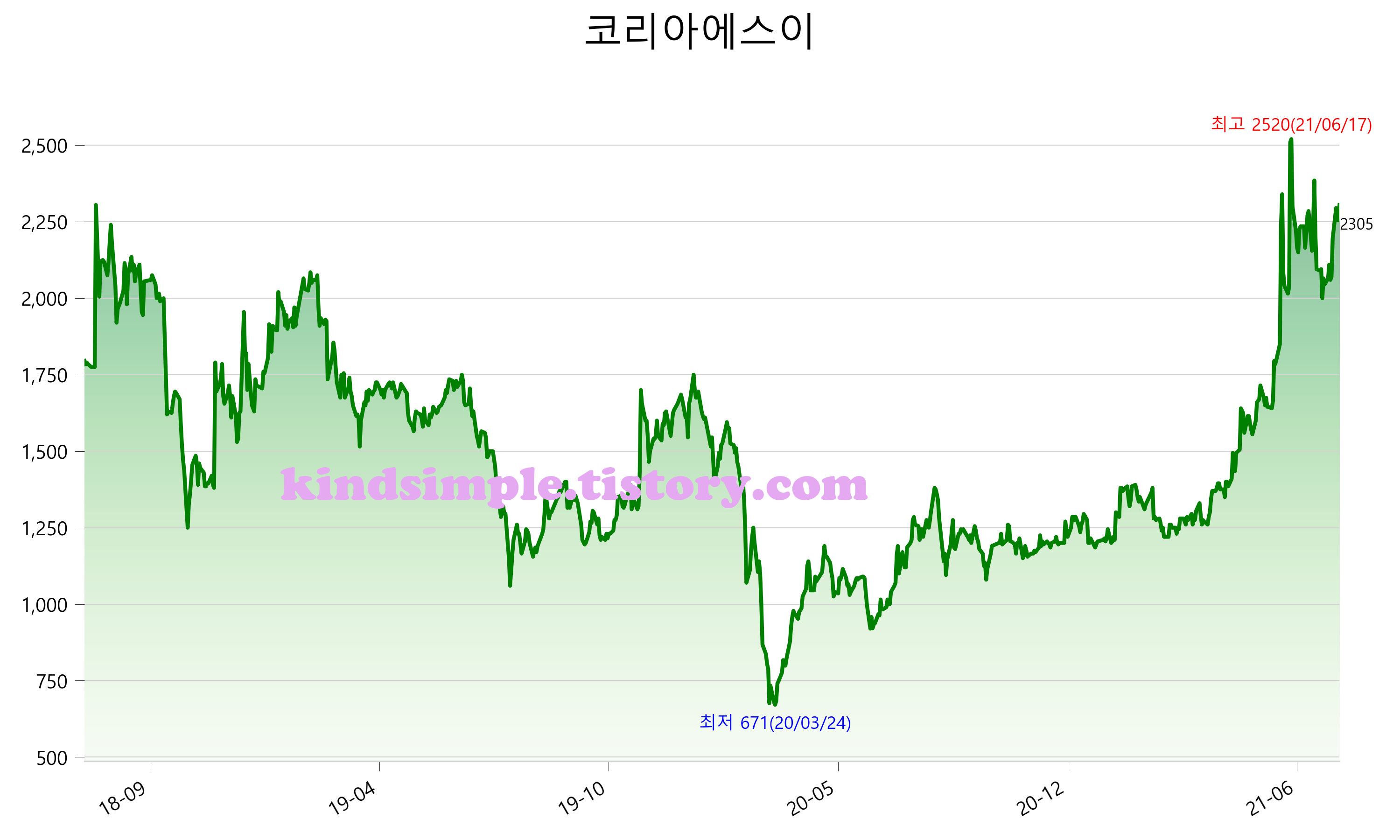 52주 최고가는 2,520원(2021-06-17), 52주 최저가는 1,080원(2020-09-24)으로 52주간 변동률은 85.1% 입니다.