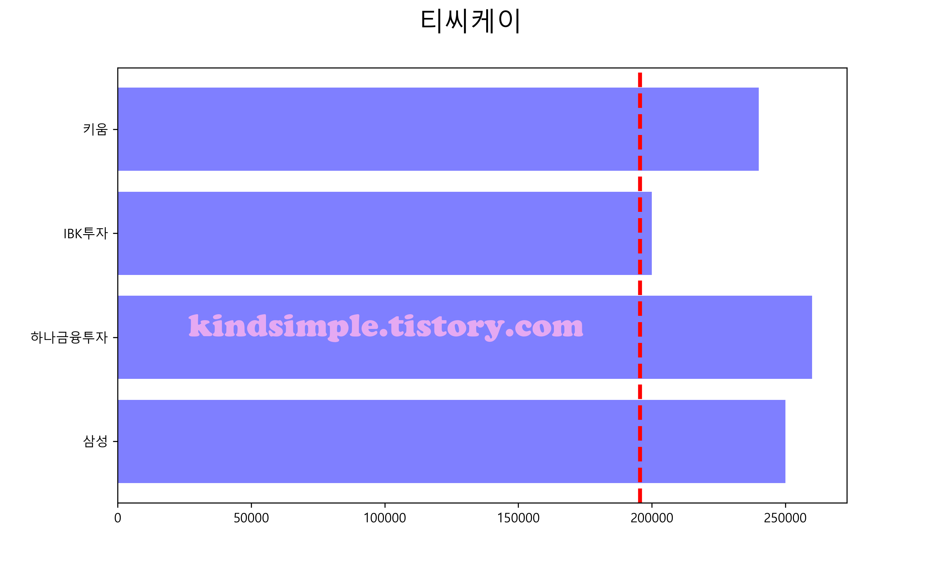 아래 그래프의 빨간색 점선이 현재 주가입니다.
