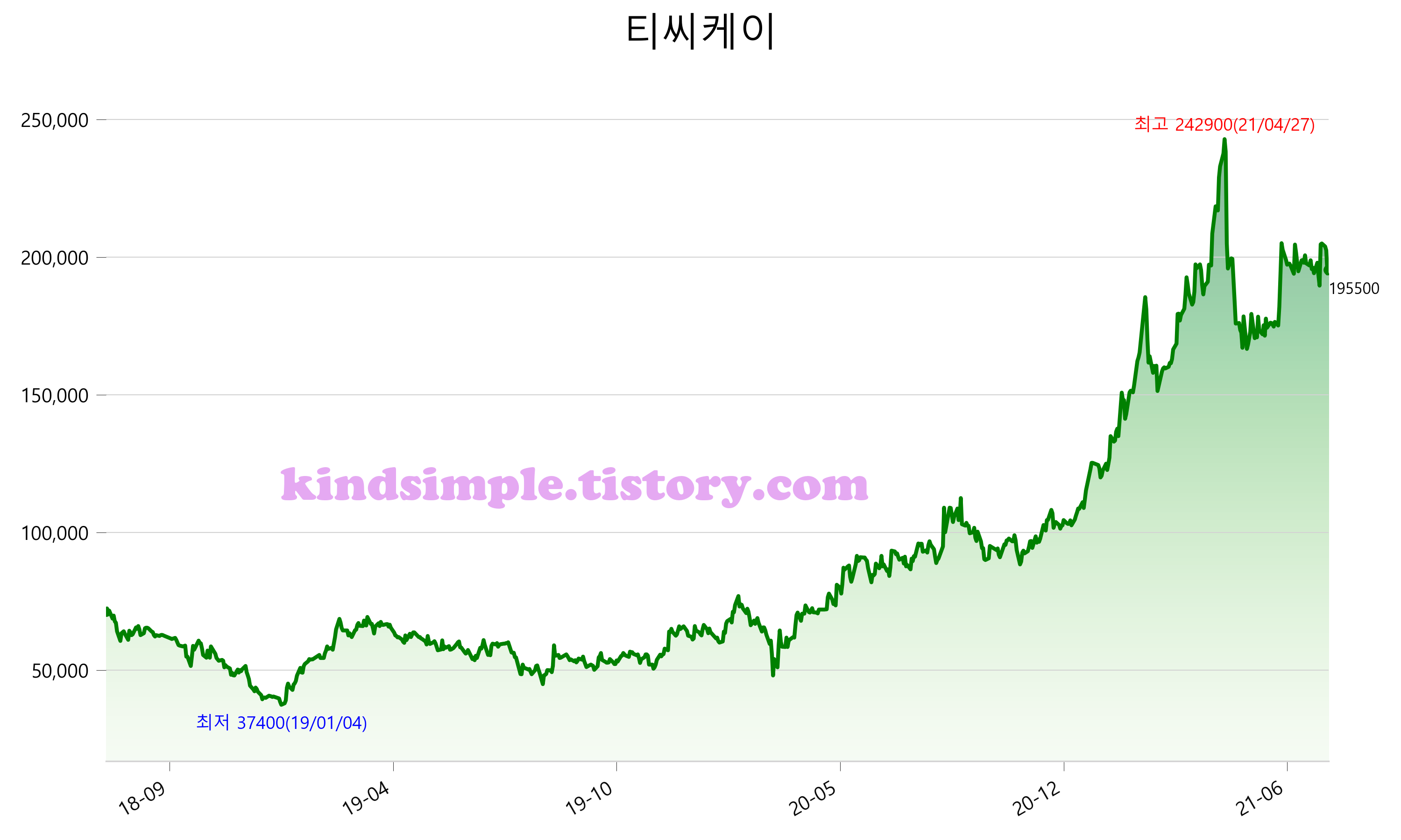7월 29일 기준 주가는 195,500원 입니다. 아래는 최근 3년간의 주가흐름입니다.