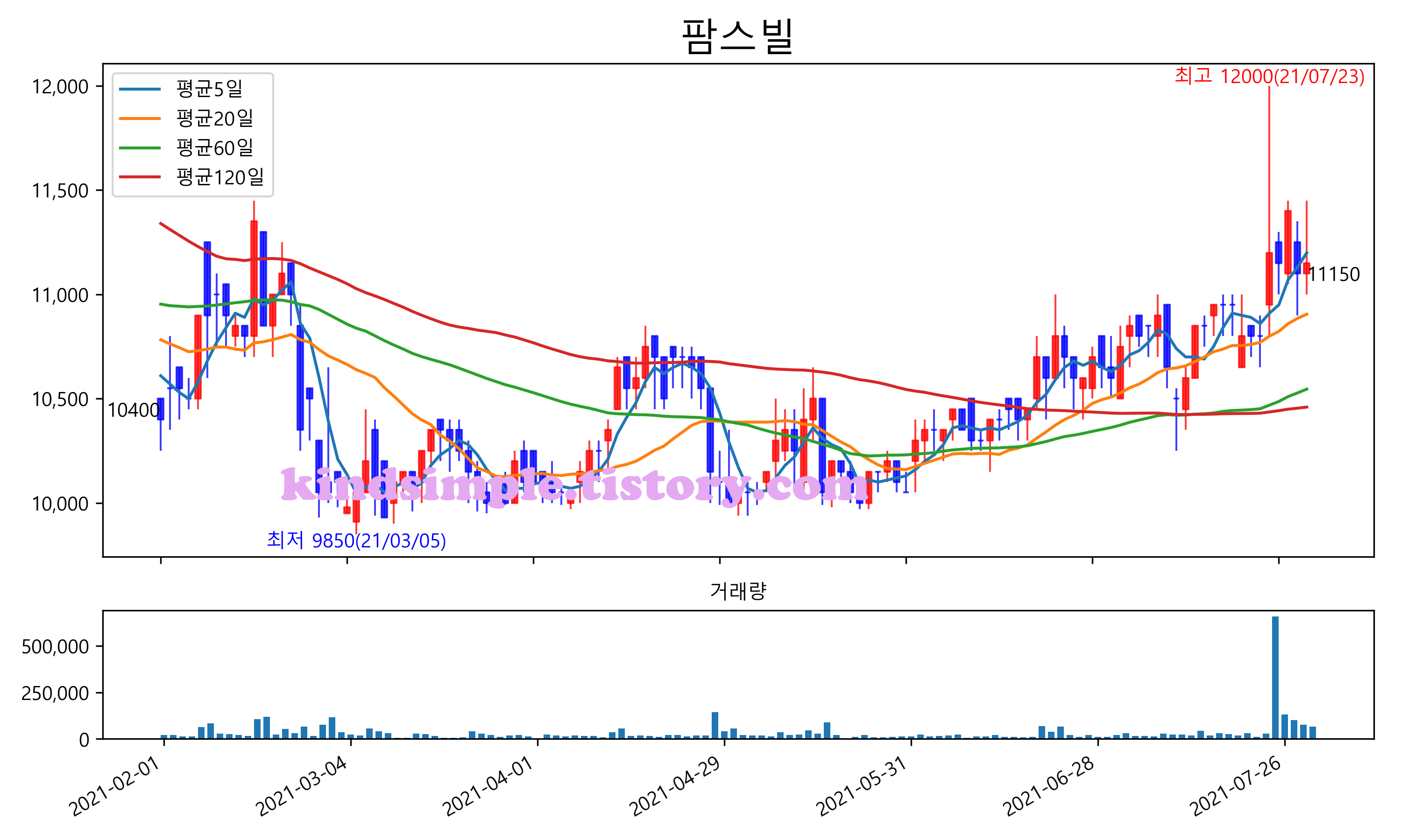 최근 6개월간 캔들차트 및 이동평균선입니다.