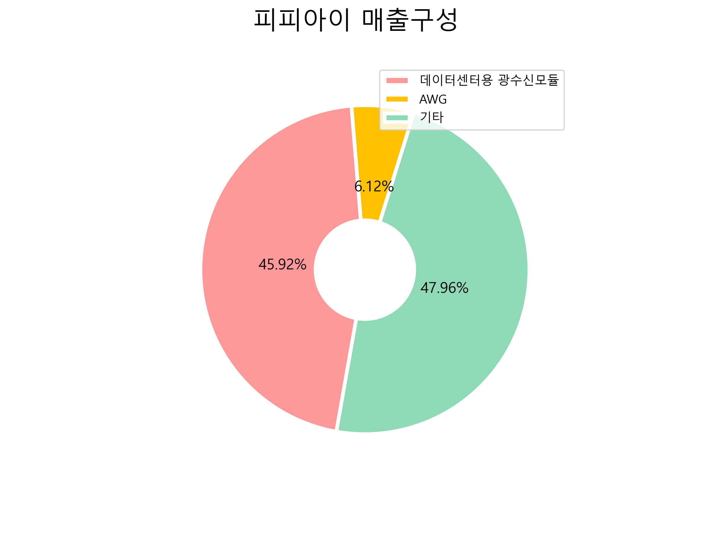 - 주력 제품 사업부문은 데이터센터용 AWG, 통신용 AWG, 스플리터, 광 파장 파워 계측기로 분류되며, 상품으로는 5G MUX를 판매.