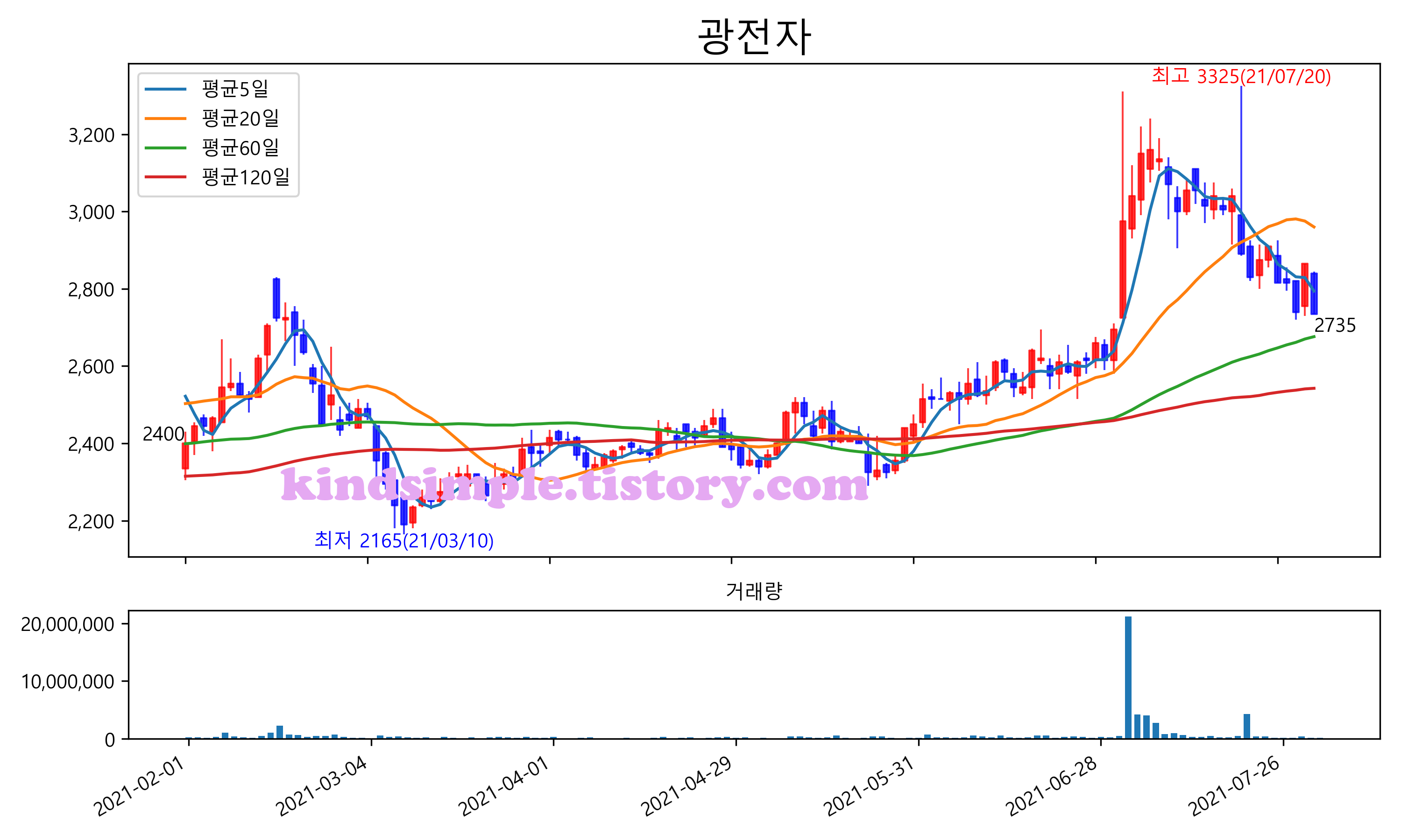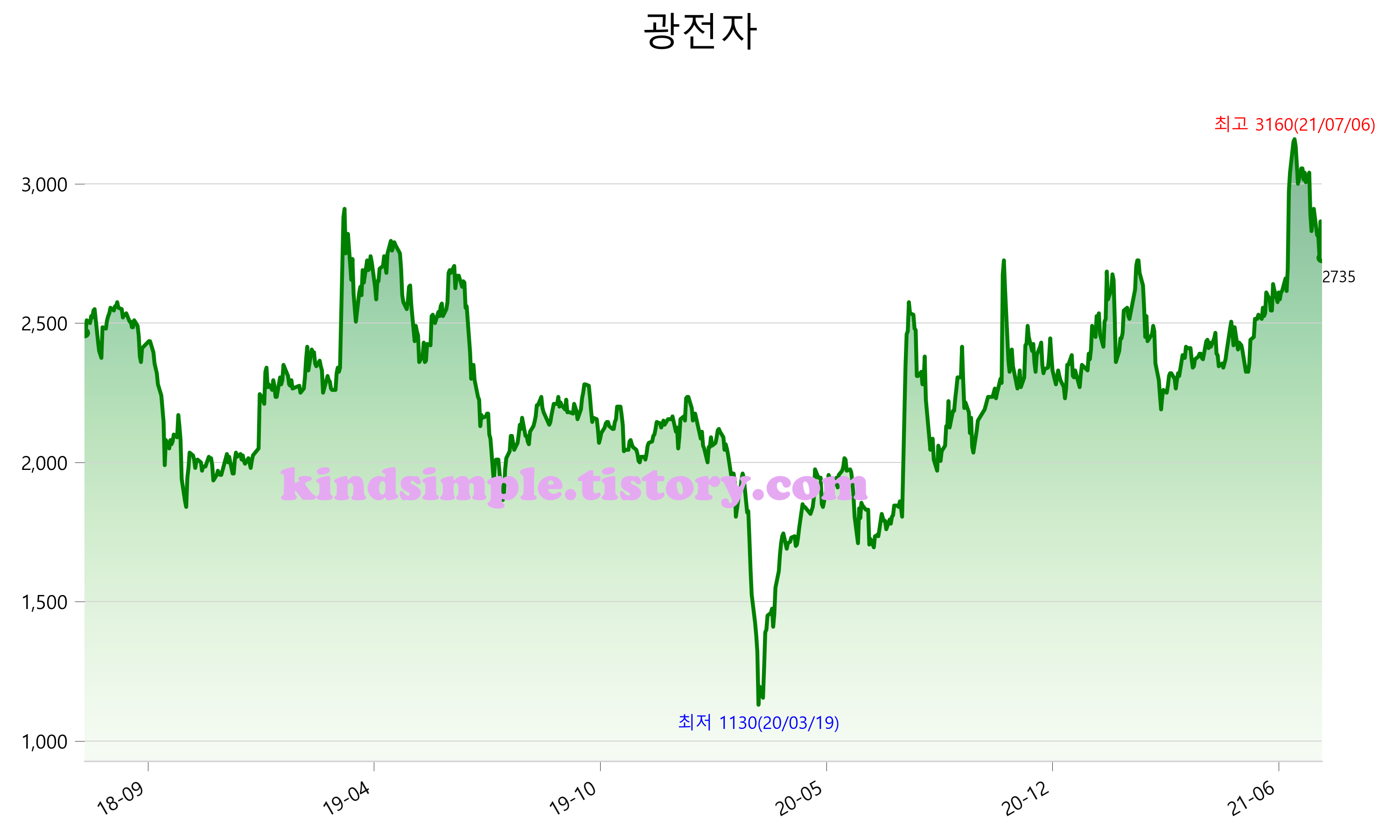 7월 30일 기준 주가는 2,735원 입니다. 아래는 최근 3년간의 주가흐름입니다.