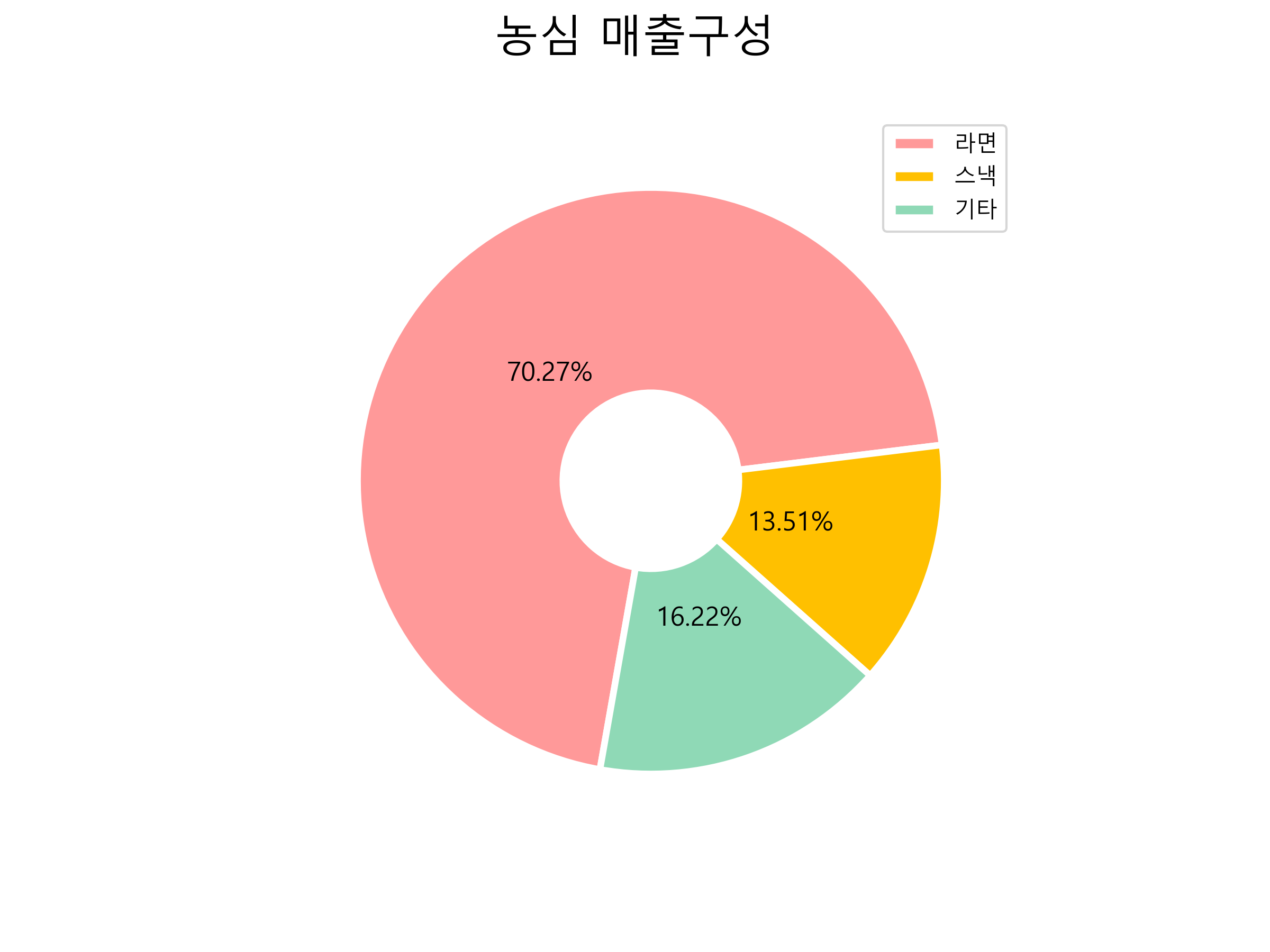 - '짬뽕건면', '배홍동', '포테토칩 엣지', '미니짜파링' 등 라면과 스낵 시장에서 프리미엄 신제품을 지속적으로 출시하고 있음.