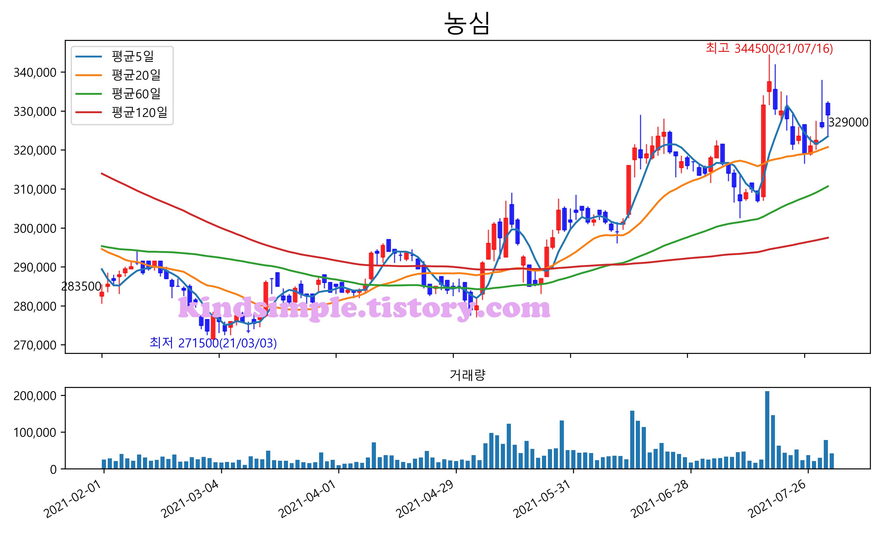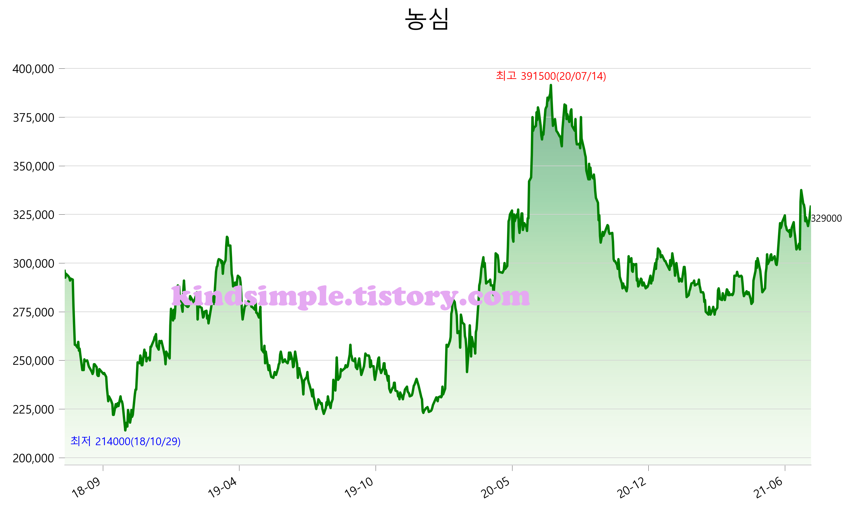 7월 30일 기준 주가는 329,000원 입니다. 아래는 최근 3년간의 주가흐름입니다.