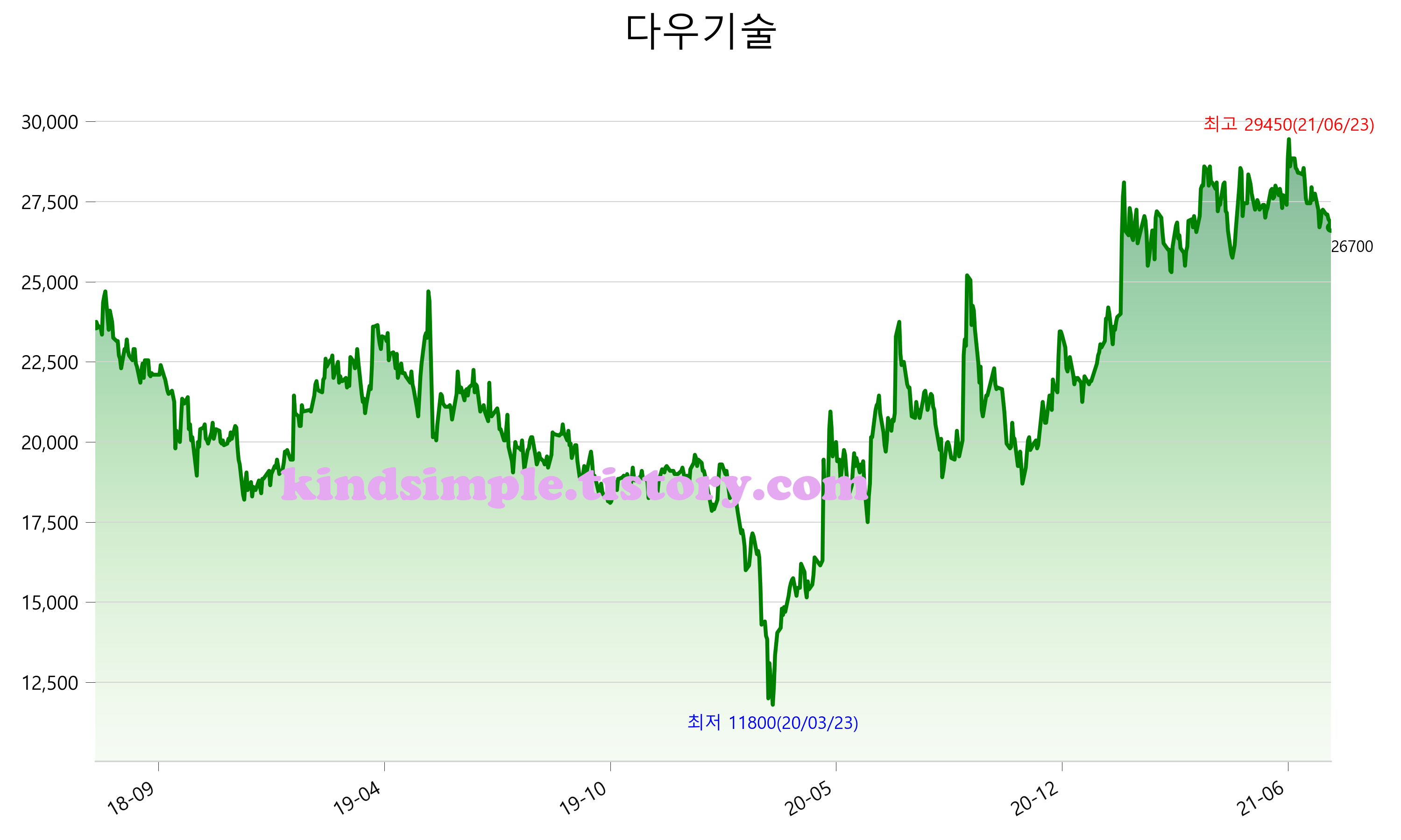 7월 30일 기준 주가는 26,700원 입니다. 아래는 최근 3년간의 주가흐름입니다.