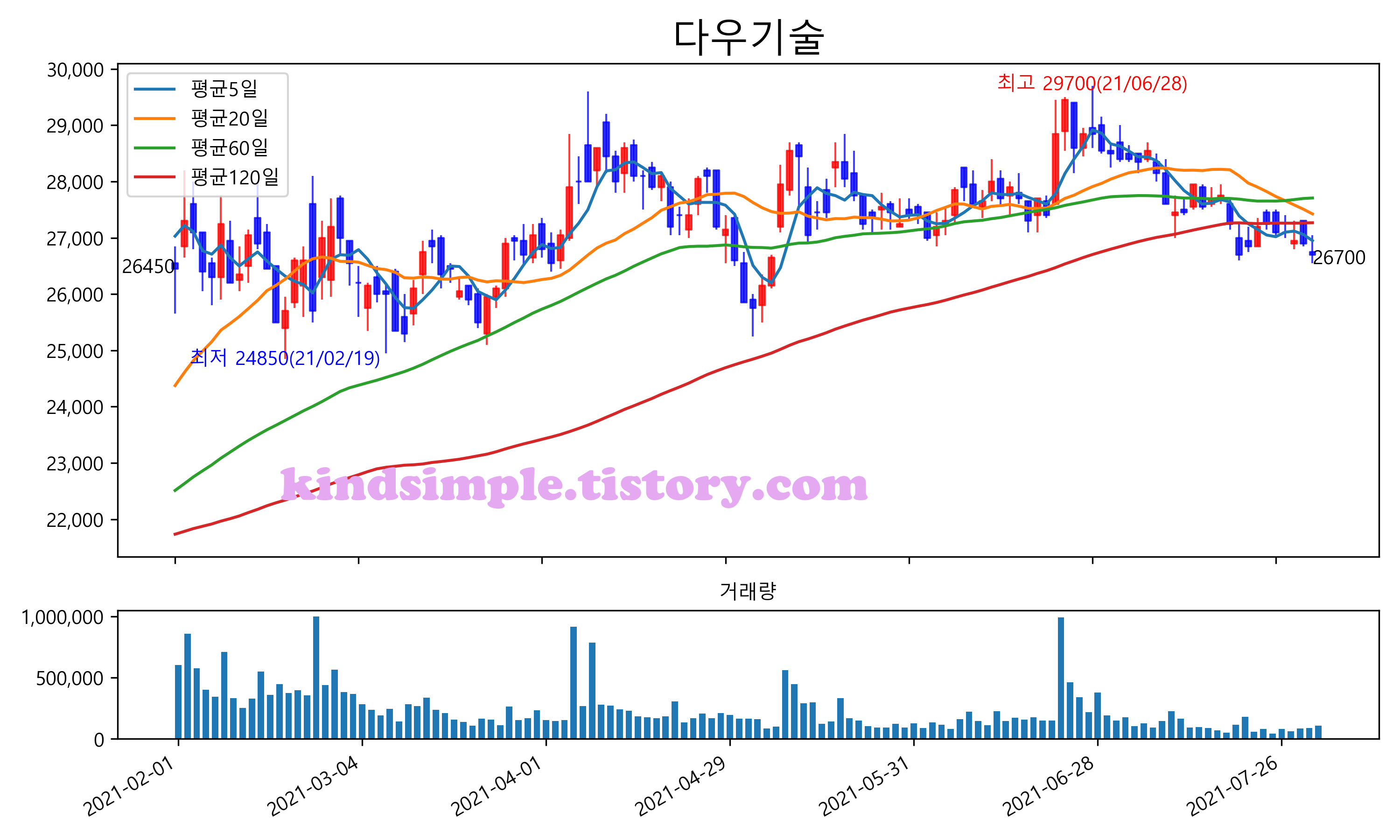 최근 6개월간 캔들차트 및 이동평균선입니다.