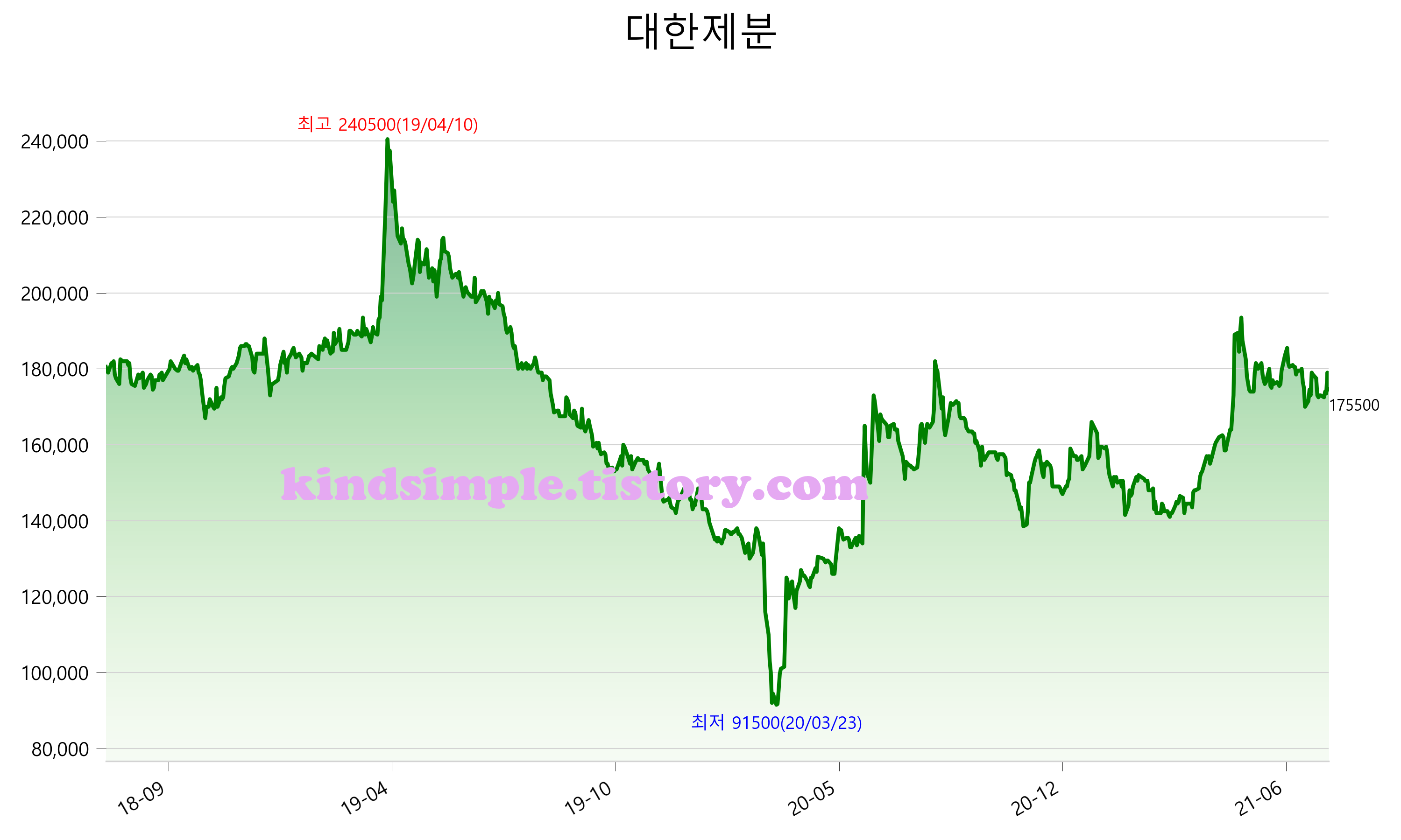 7월 30일 기준 주가는 175,500원 입니다. 아래는 최근 3년간의 주가흐름입니다.