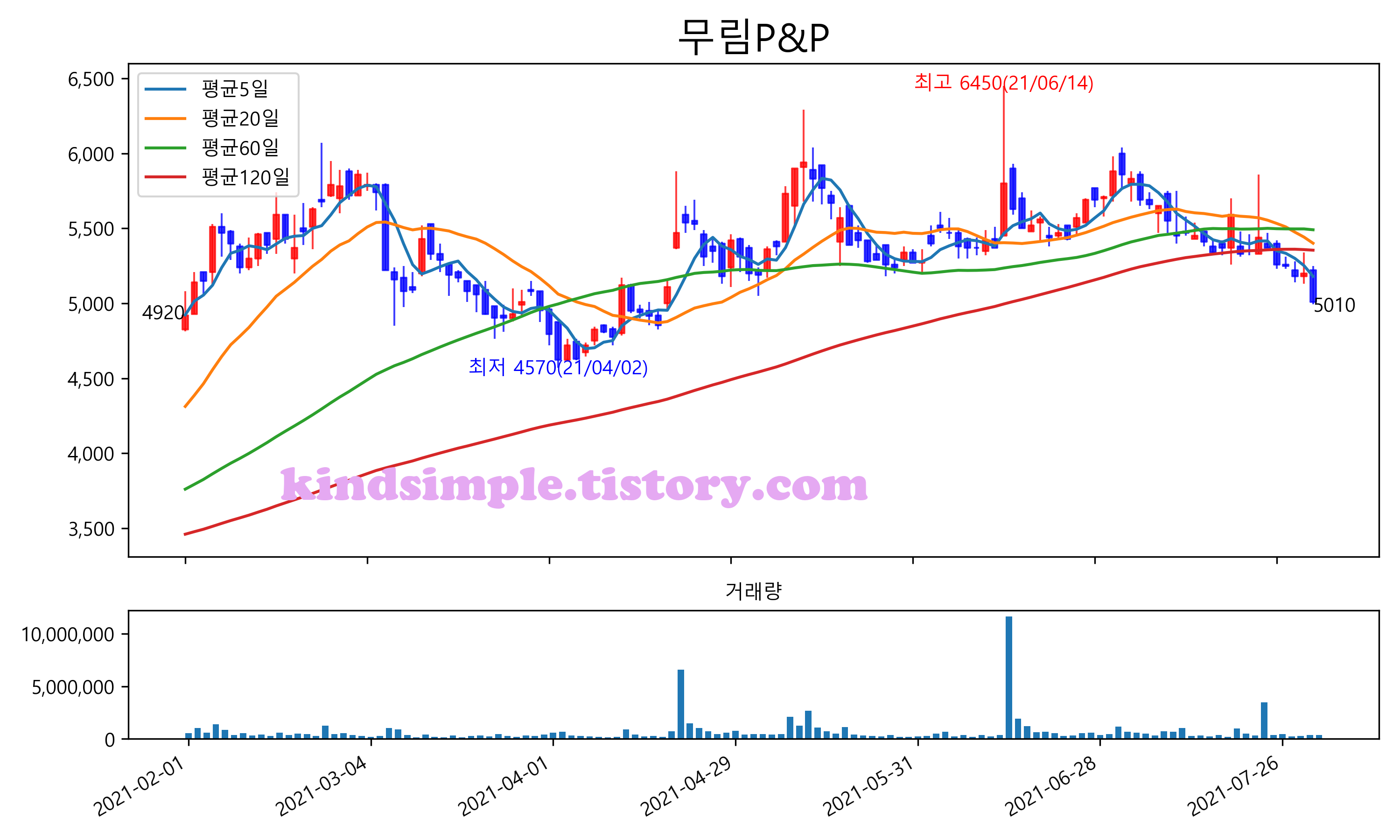 최근 6개월간 캔들차트 및 이동평균선입니다.