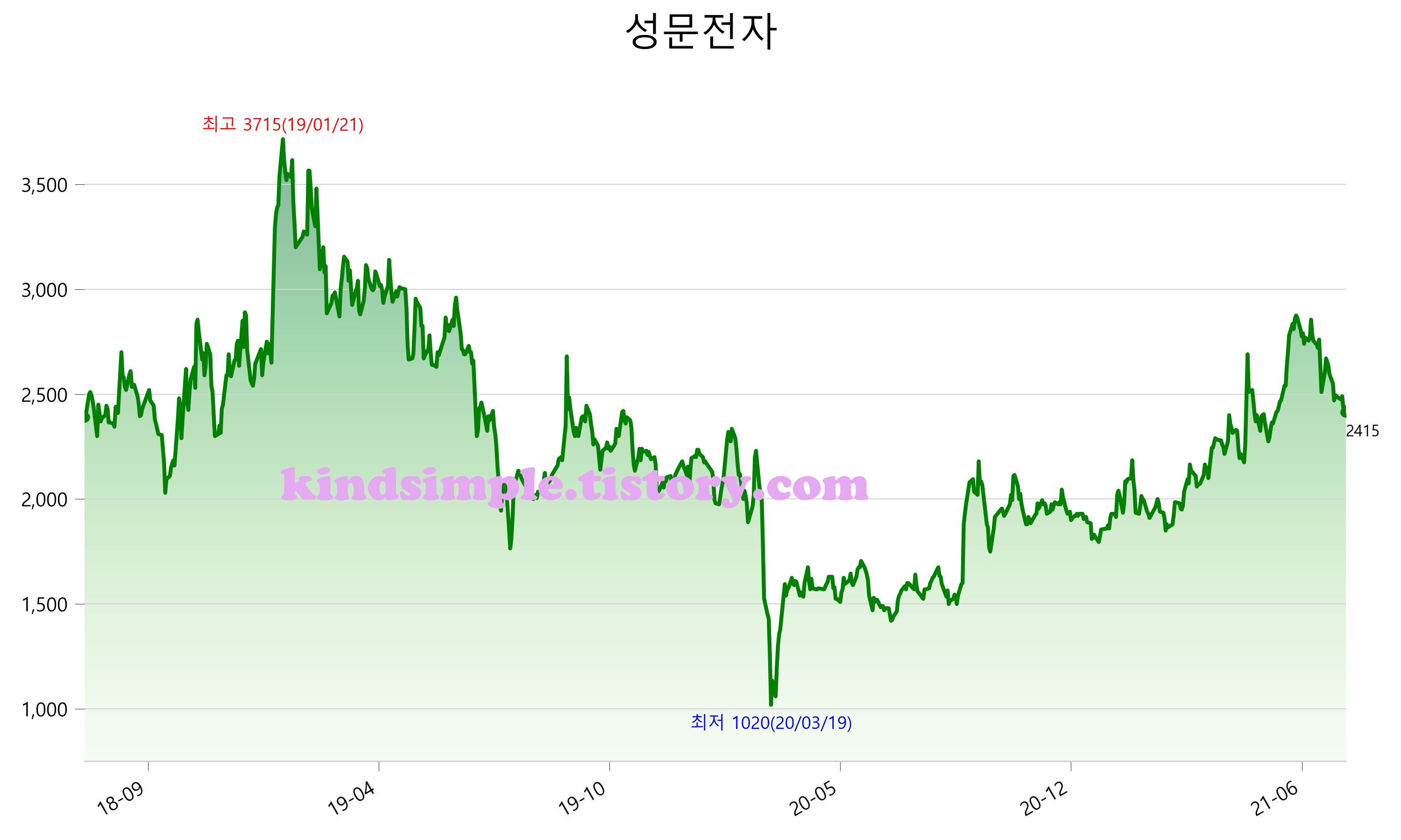7월 31일 기준 주가는 2,415원 입니다. 아래는 최근 3년간의 주가흐름입니다.