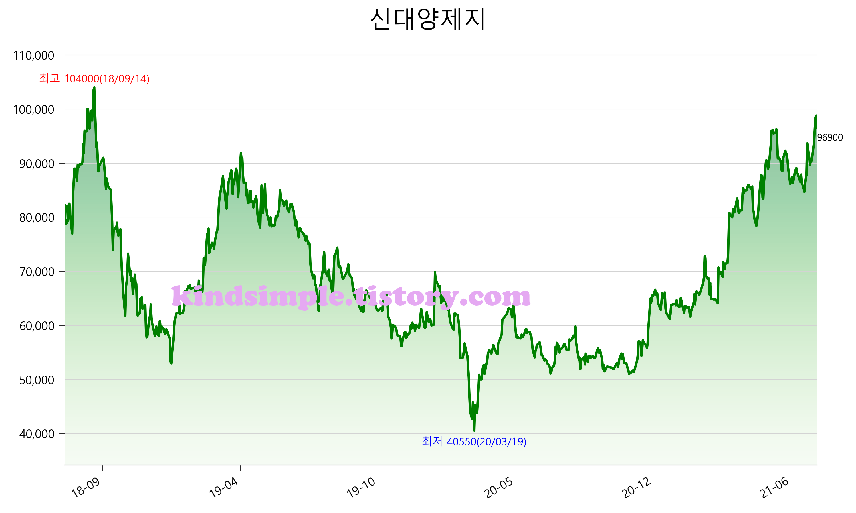7월 31일 기준 주가는 96,900원 입니다. 아래는 최근 3년간의 주가흐름입니다.