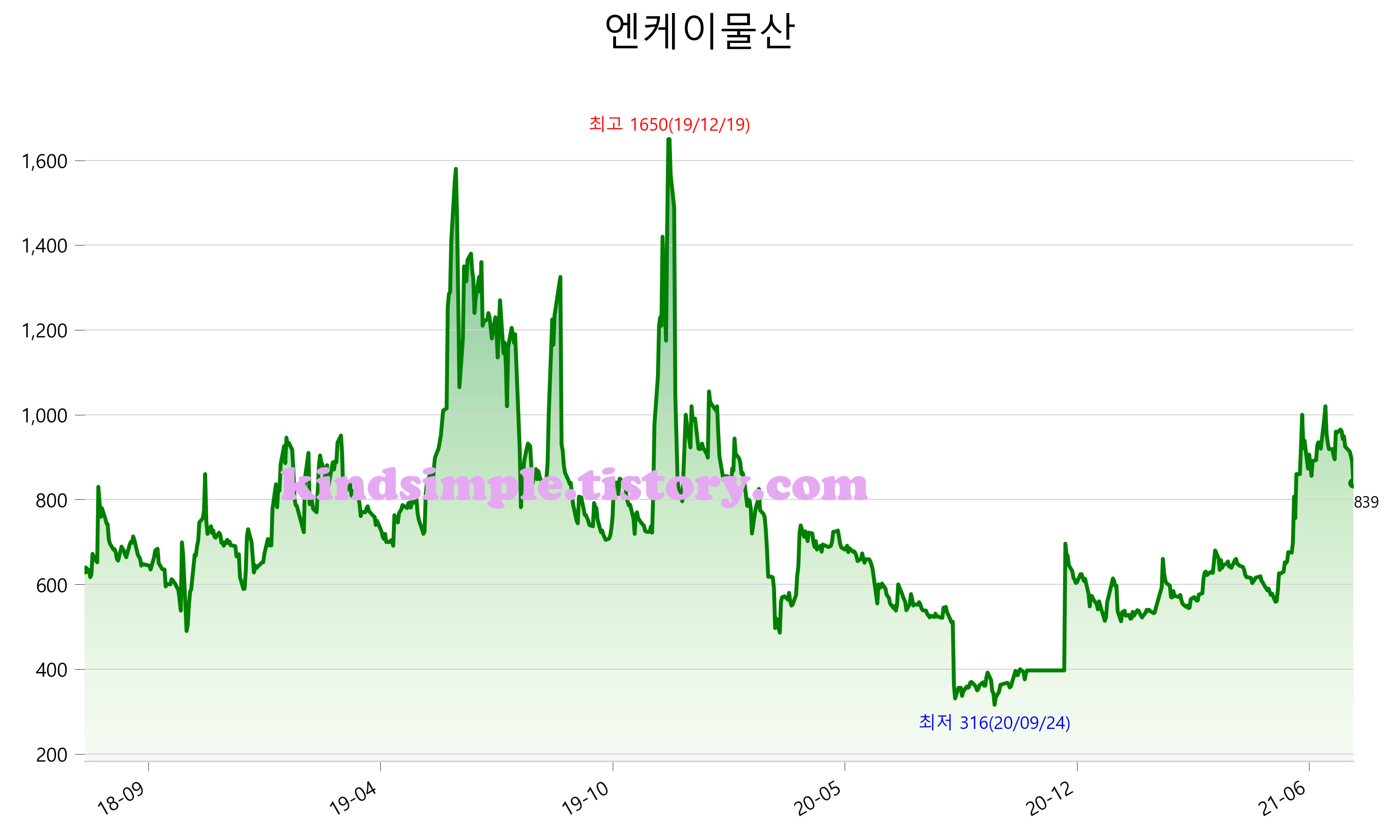 7월 31일 기준 주가는 839원 입니다. 아래는 최근 3년간의 주가흐름입니다.