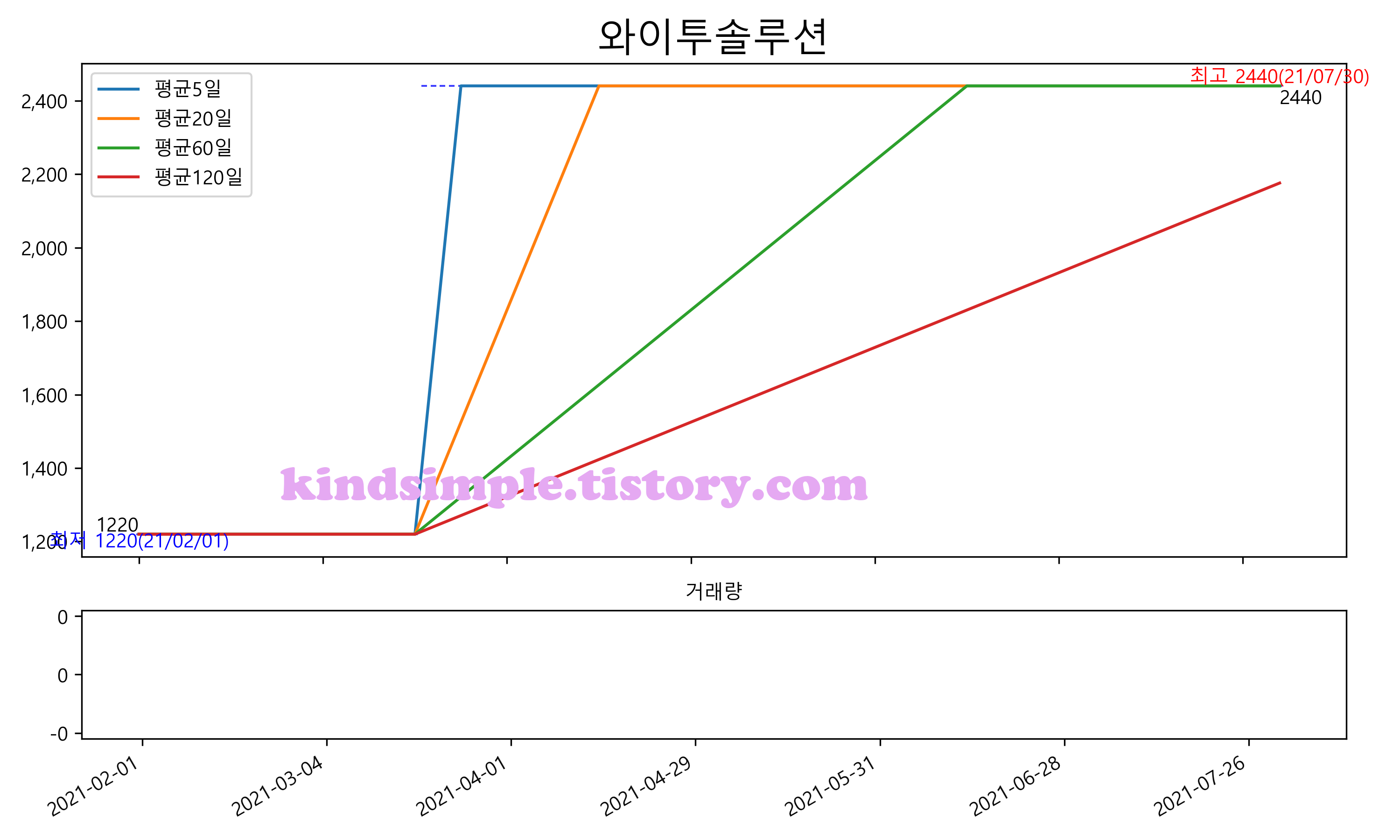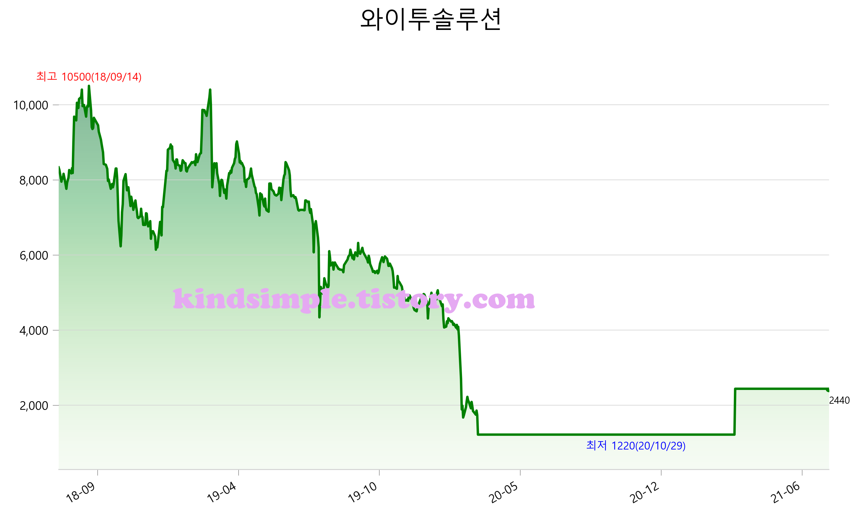 52주 최고가는 2,440원(2021-07-30), 52주 최저가는 1,220원(2021-02-02)으로 52주간 변동률은 100.0% 입니다.