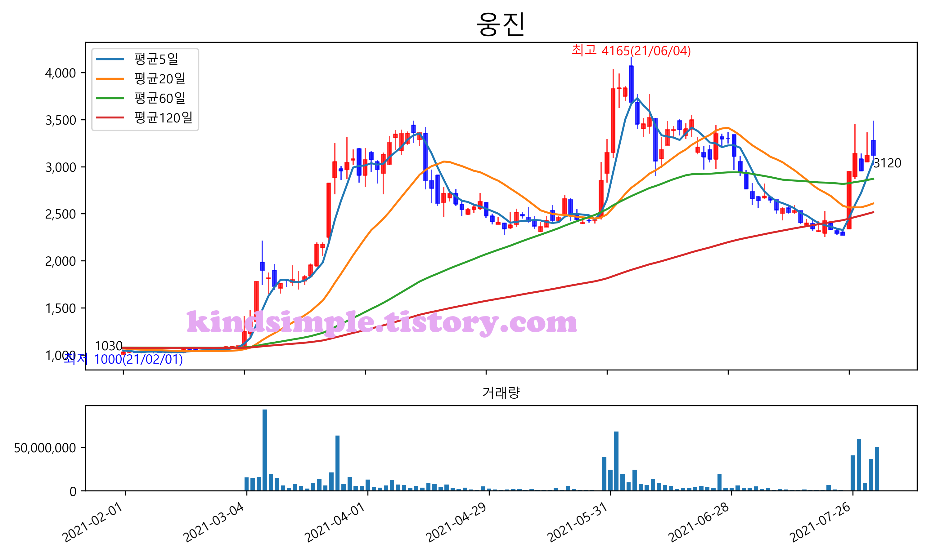 최근 6개월간 캔들차트 및 이동평균선입니다.