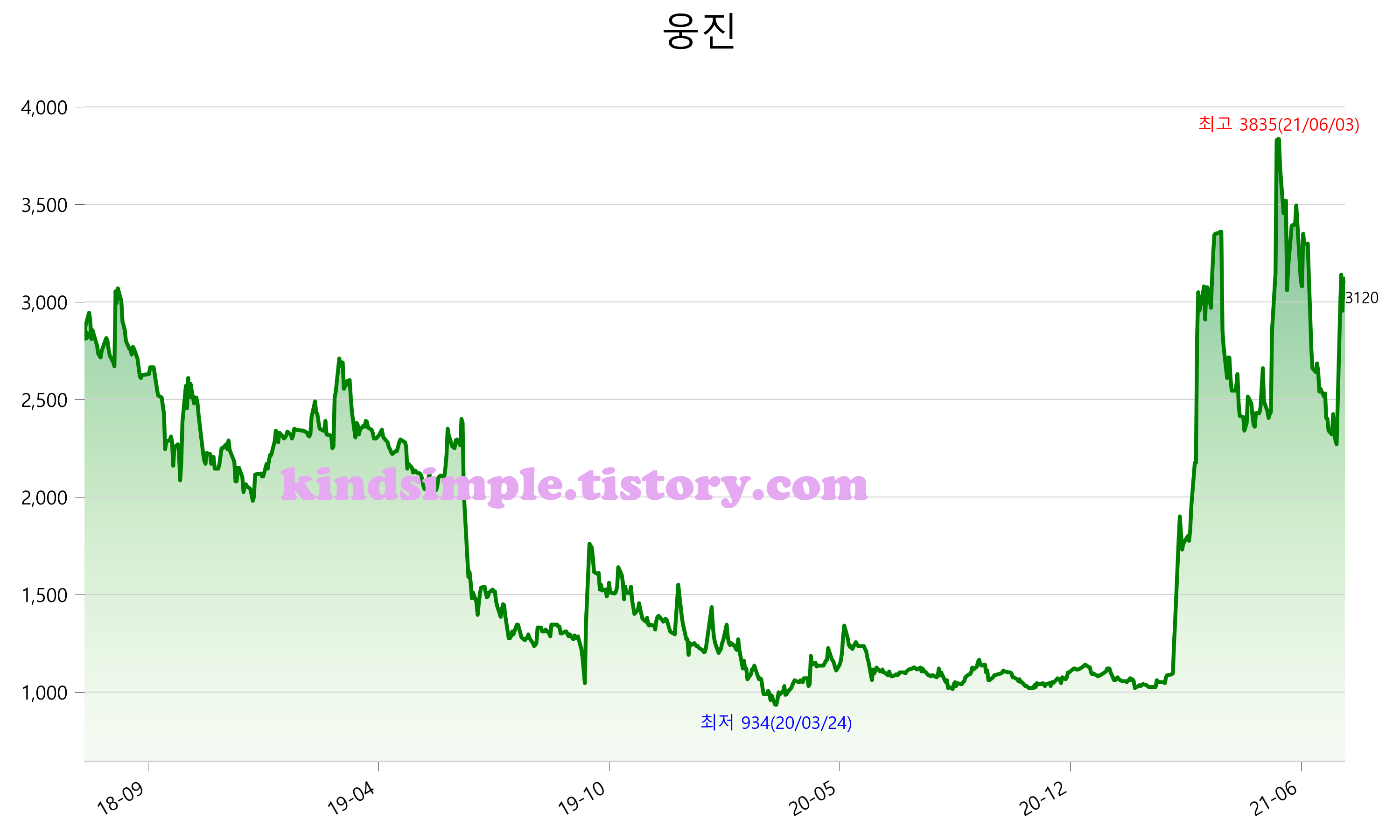 52주 최고가는 3,835원(2021-06-03), 52주 최저가는 1,015원(2020-08-24)으로 52주간 변동률은 187.6% 입니다.