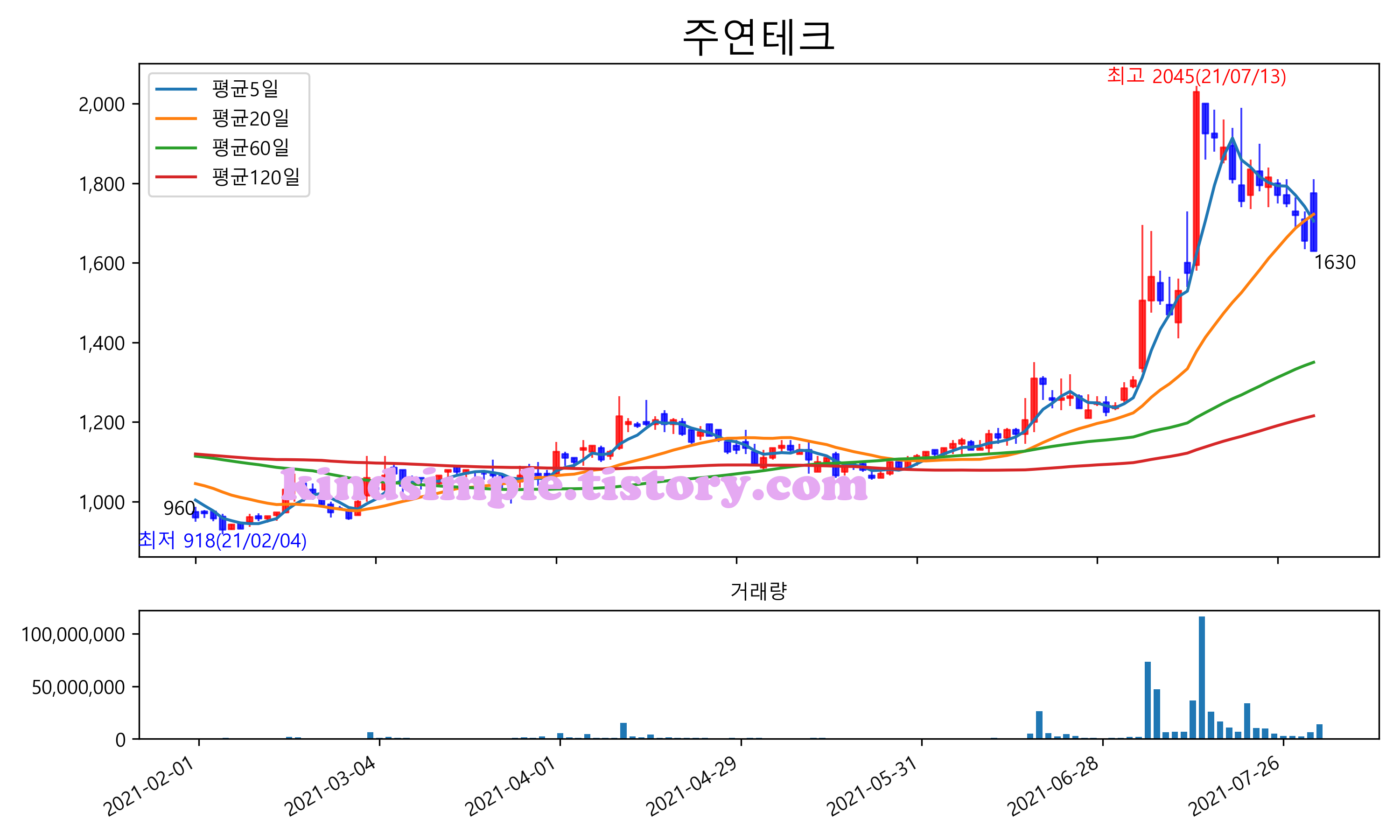 최근 6개월간 캔들차트 및 이동평균선입니다.